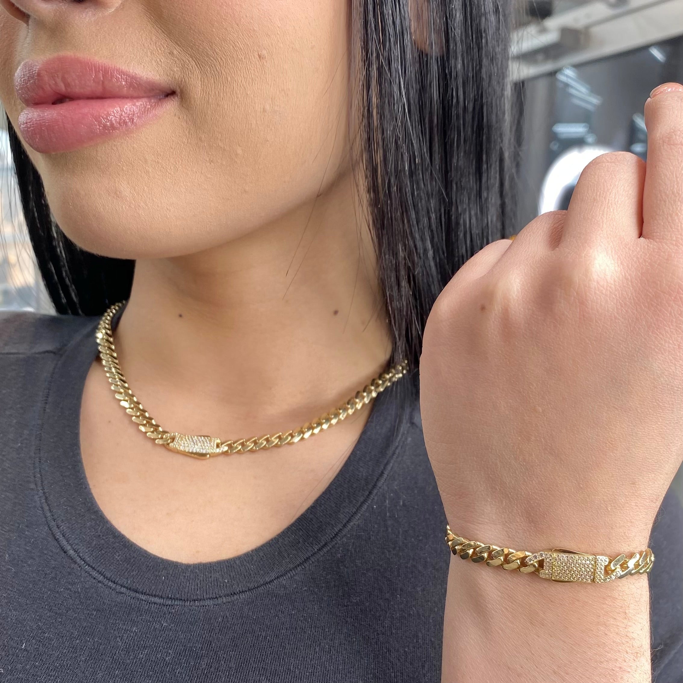 14 k Hollow Cuban ITTALLO Choker & Bracelet SET (6MM) JTJ™