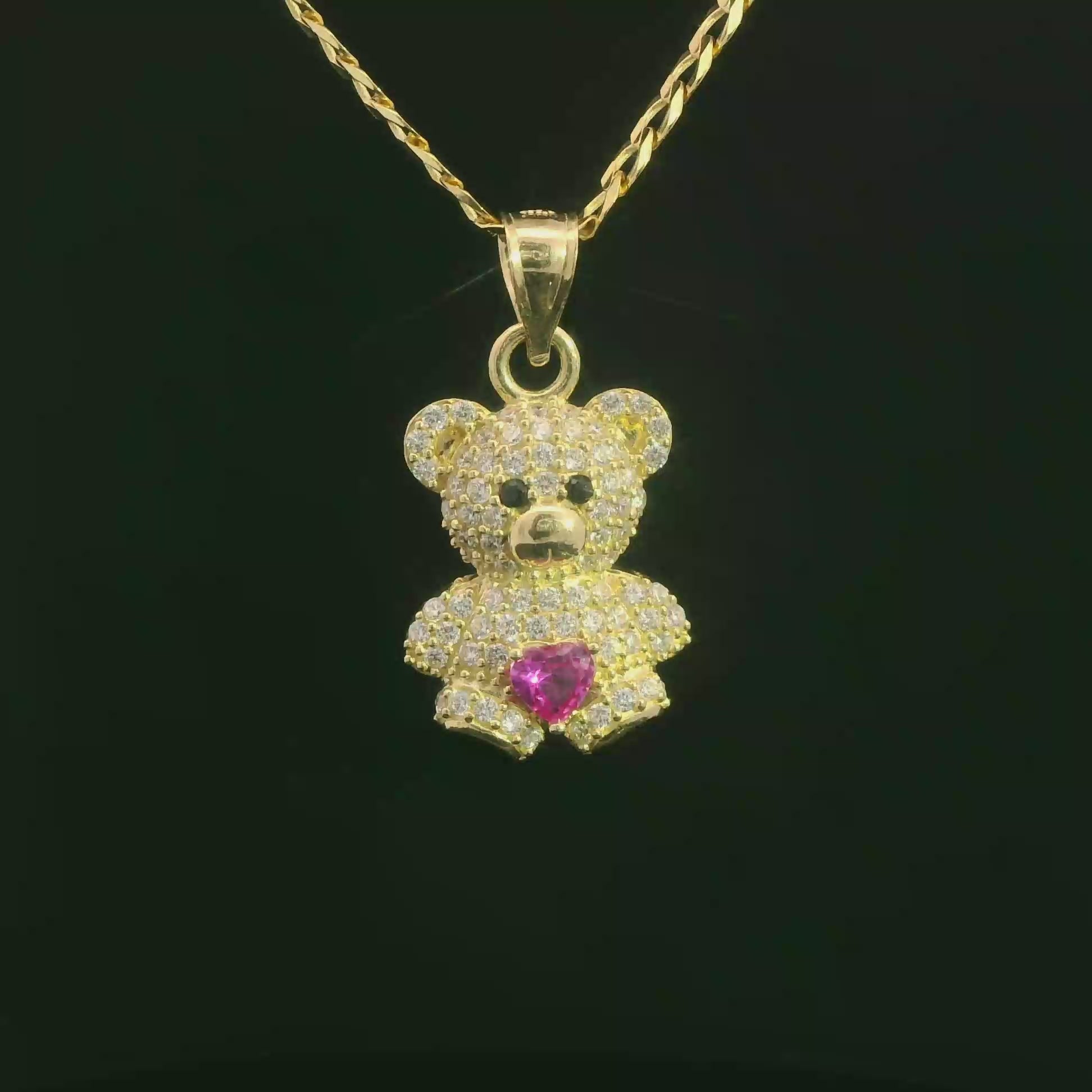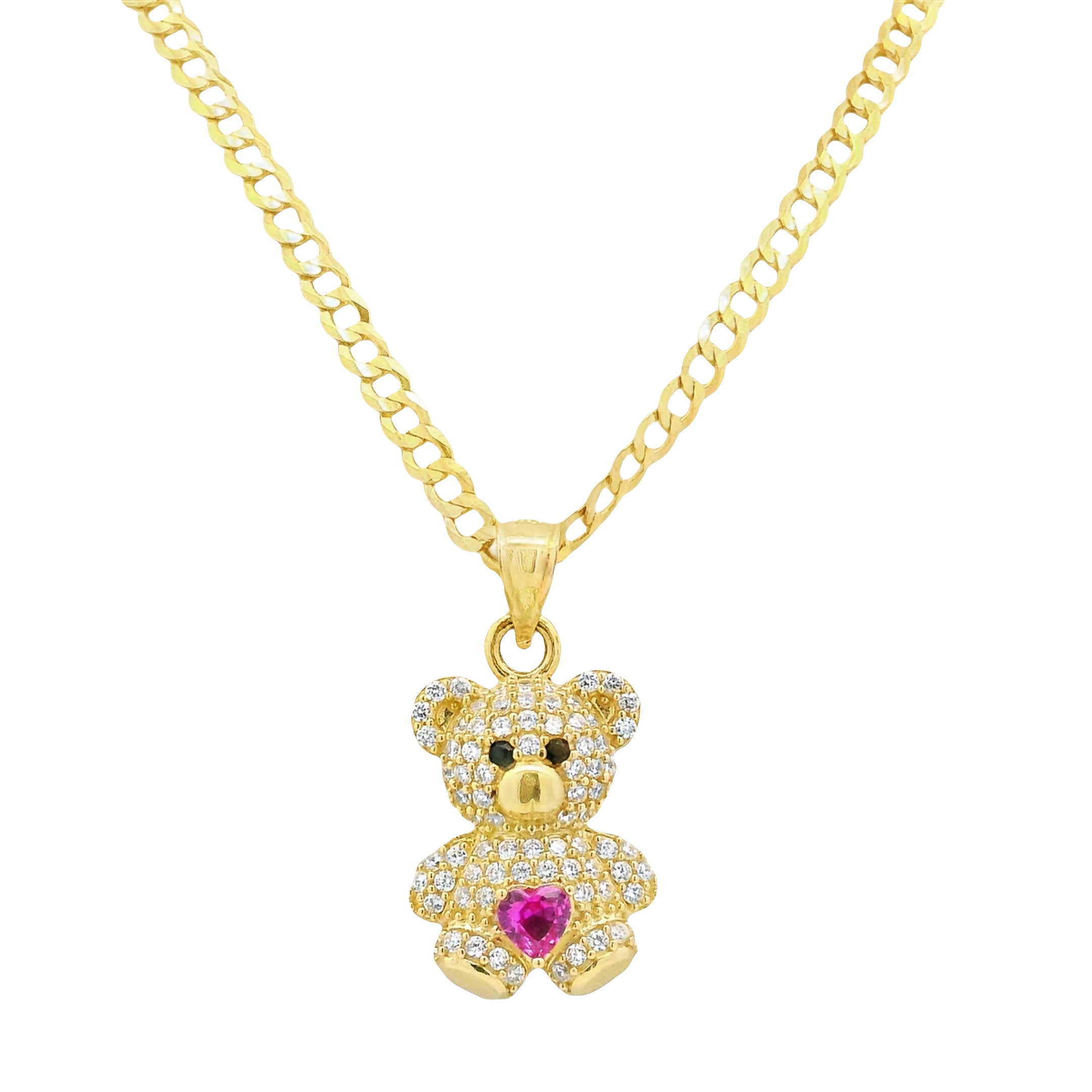 14K Teddy Bear CZ Pendant w/ Solid Cuban Chain (18” Inches) JTJ™
