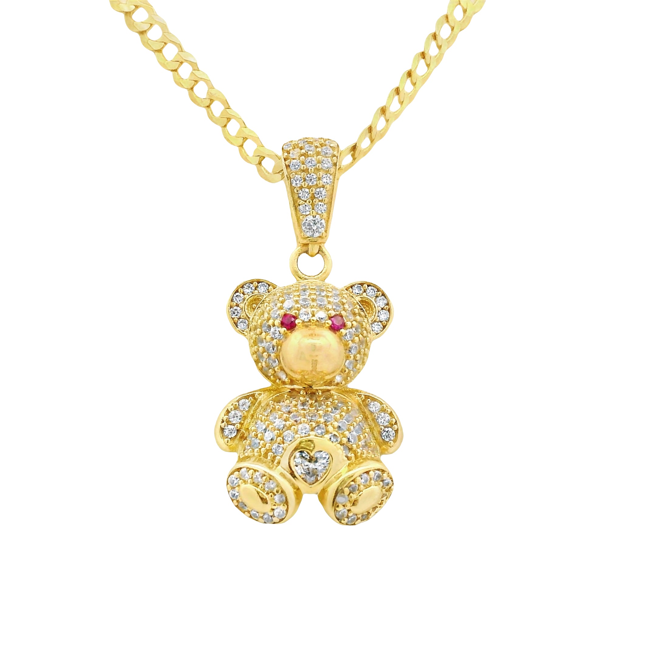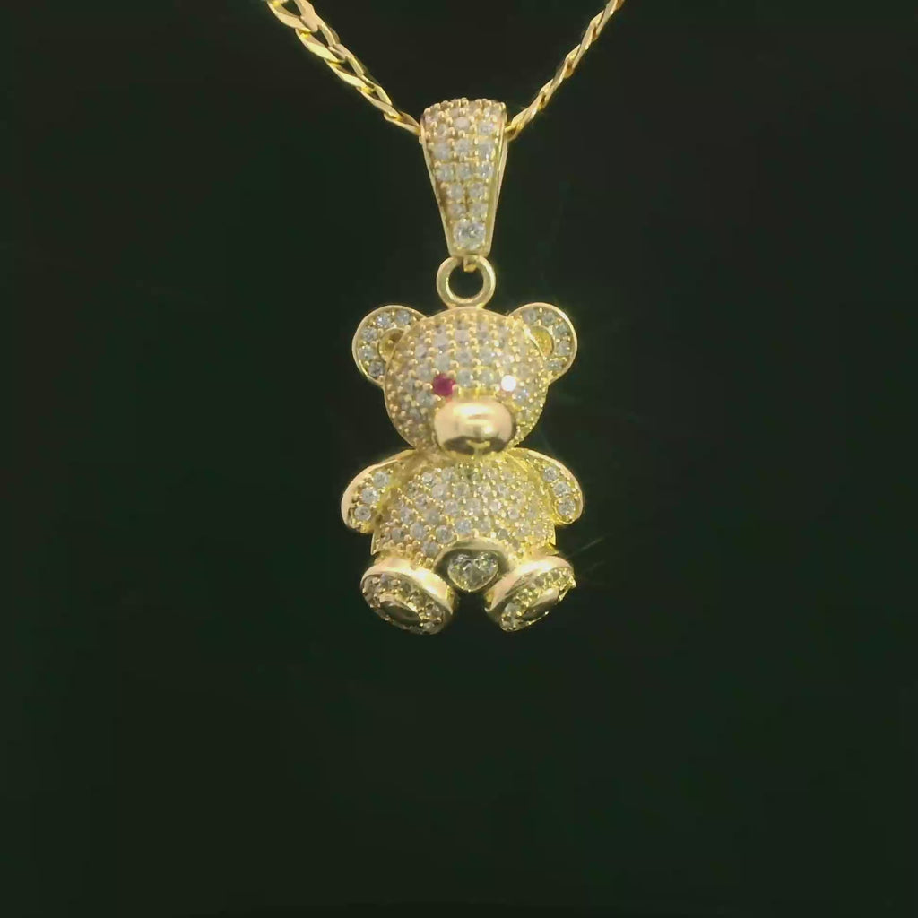 14K Teddy CZ Bear Pendant w/ Solid Cuban Chain (18” Inches) JTJ™