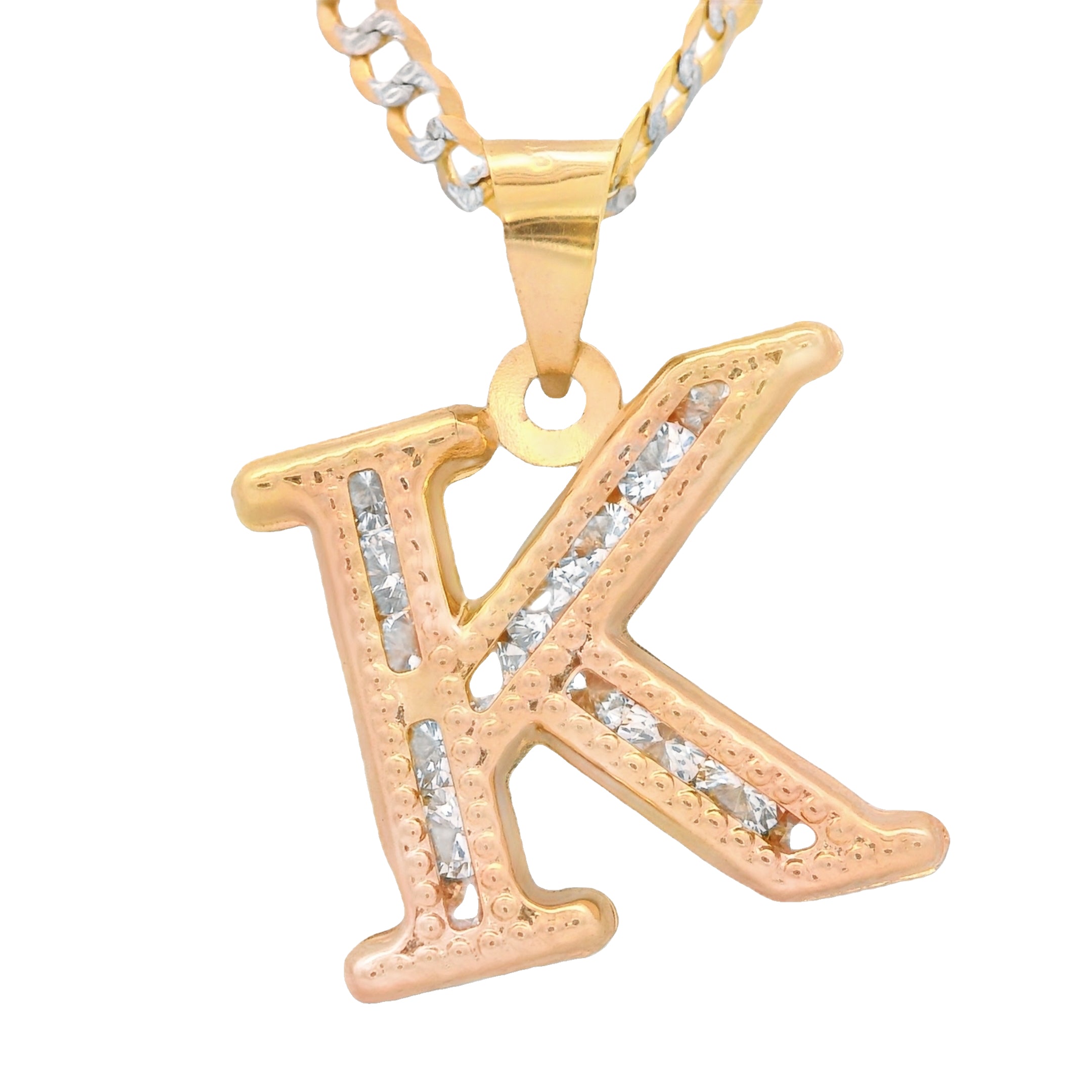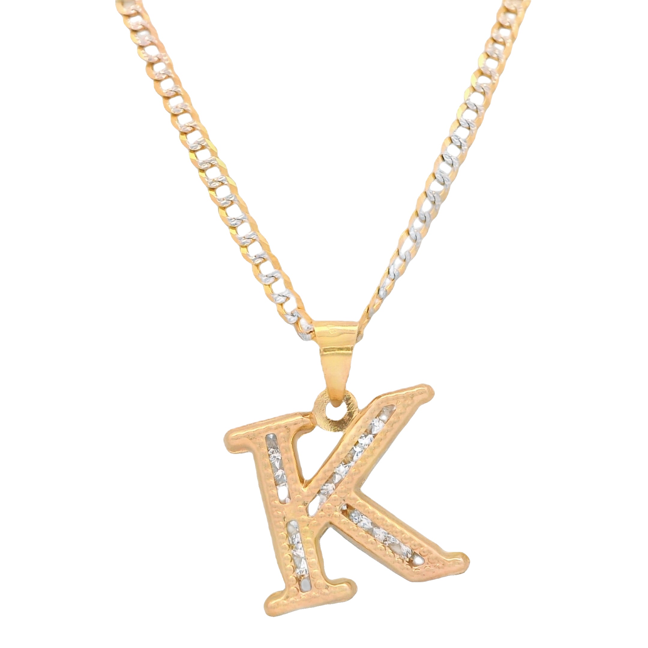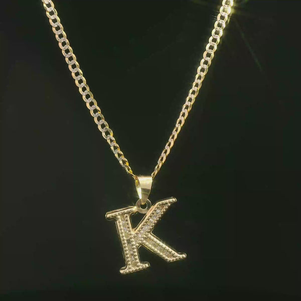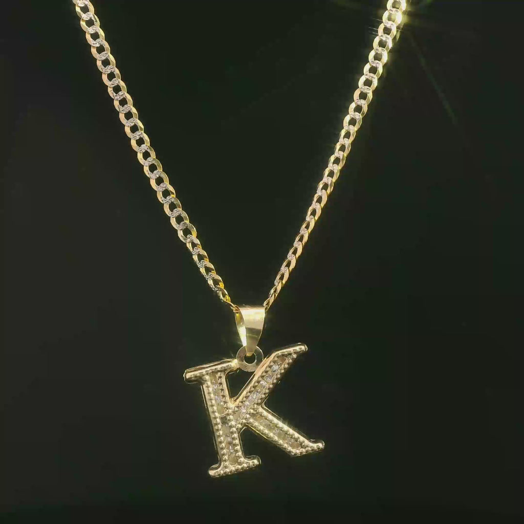 14K Initial (K) CZ Pendant w/ Solid Two Tone Cuban Chain (18” Inches) JTJ™