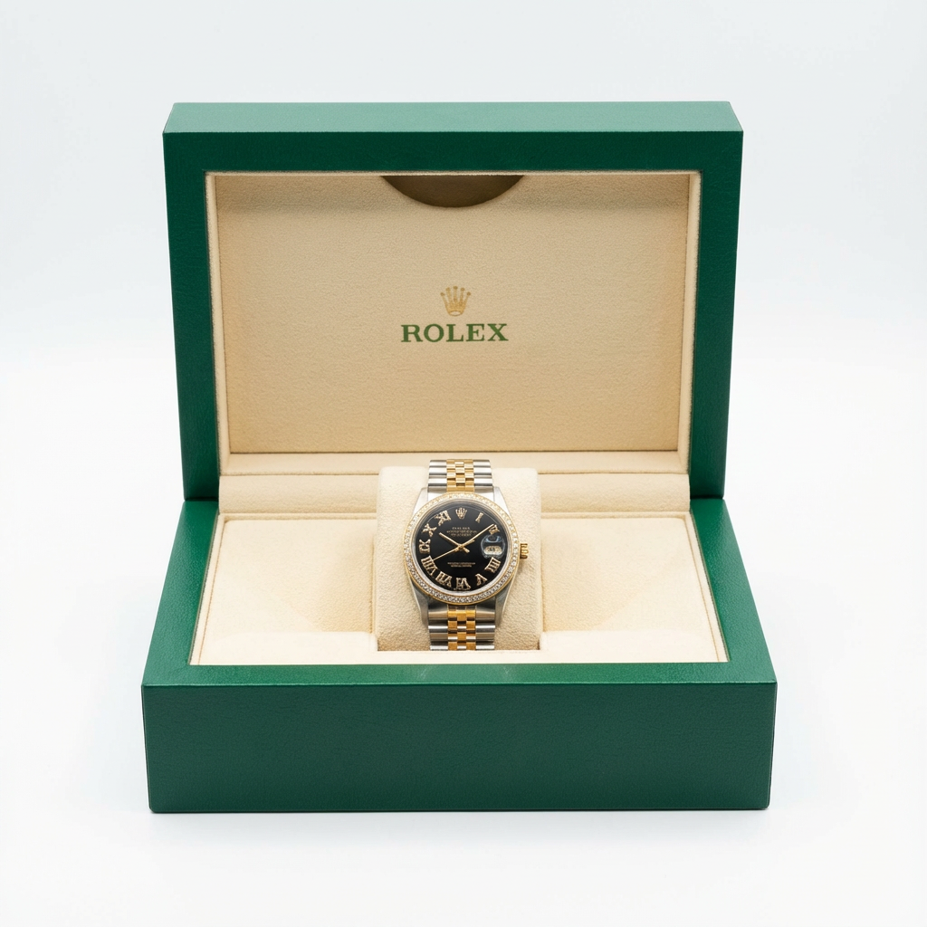 - Black Color Dial with diamond Bezel