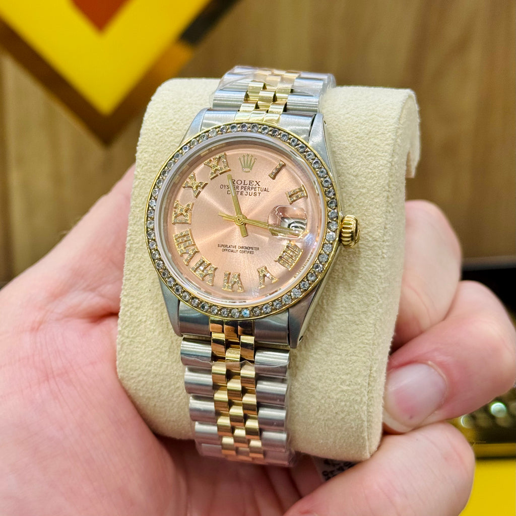 - Rose Pink Color Dial with diamond Bezel