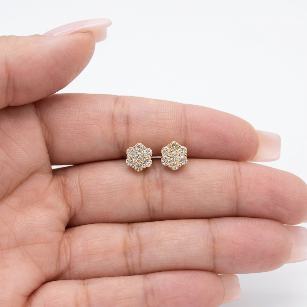 14k Money Flower Diamond 💎 Earrings (6.8MM) JTJ™