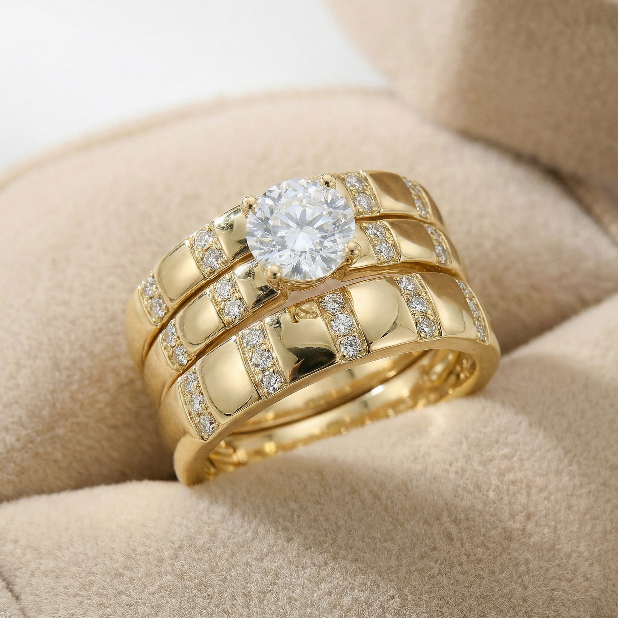 14K TRIO SET JTJ™ -those amazing designer RINGS are made with real 14k yellow gold and includes 1 year warranty. Buy with confidence from the best jeweler in New York: