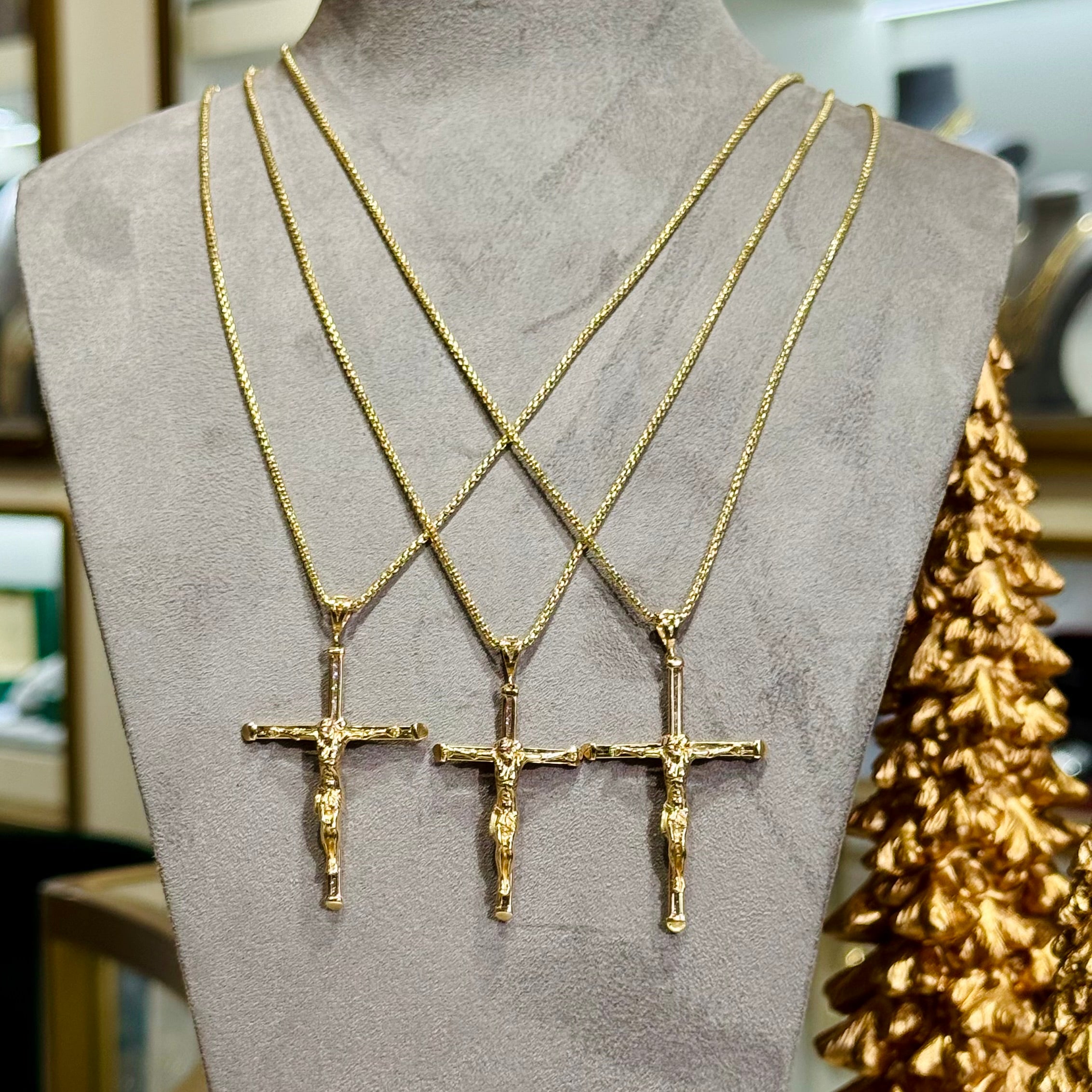 14 K Cross CZ Pendant + Hollow DY Style Box Chain (22” Inches) JTJ™