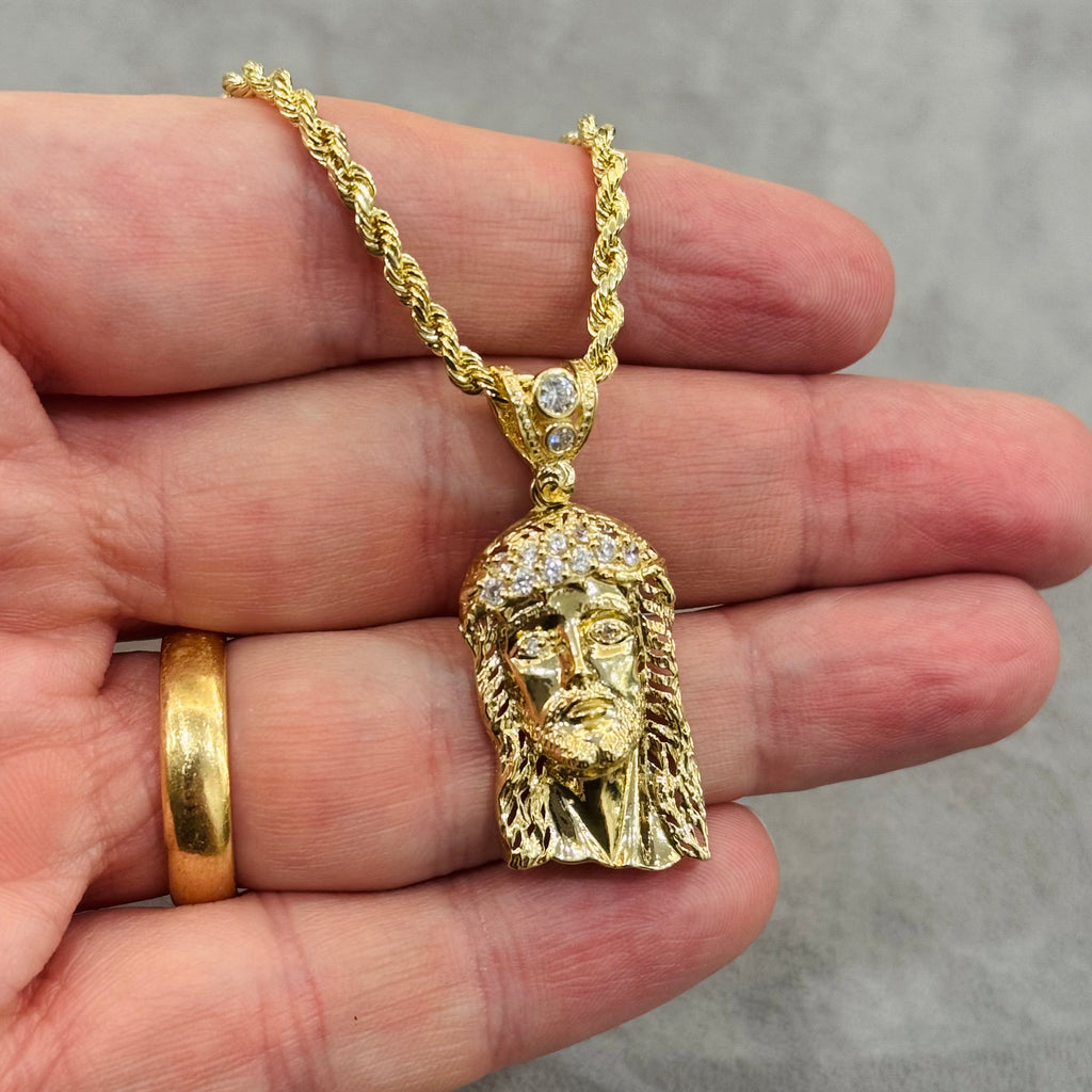14k Jesus Face CZ Pendant W/ Hollow Rope Chain (22” Inches) JTJ™