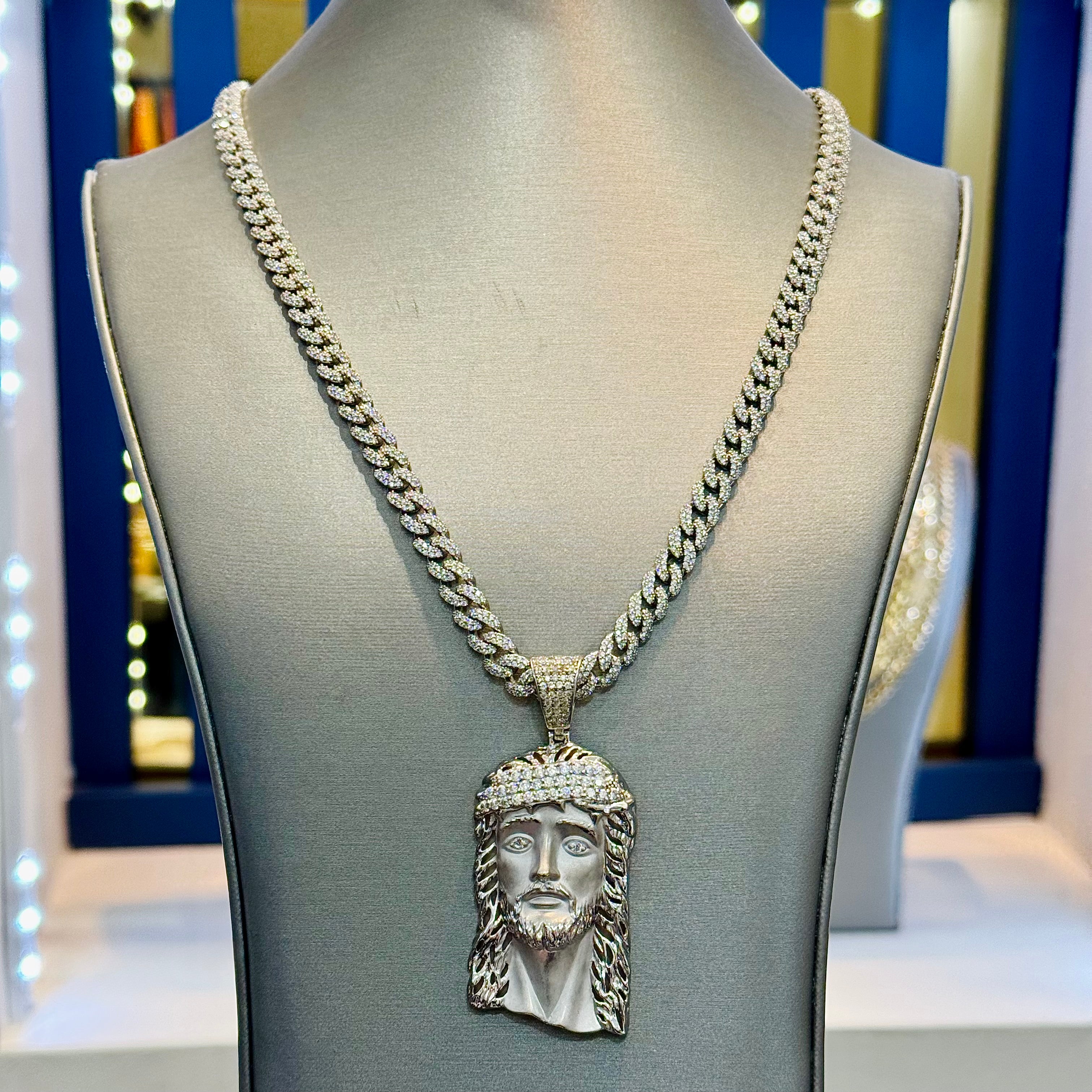 14K Jesus Face CZ W\Hollow Cuban 14k JTJ™ - this amazing designer chain is real 14k white gold and includes 1 year warranty. buy with confidence from the best jeweler in New York:
