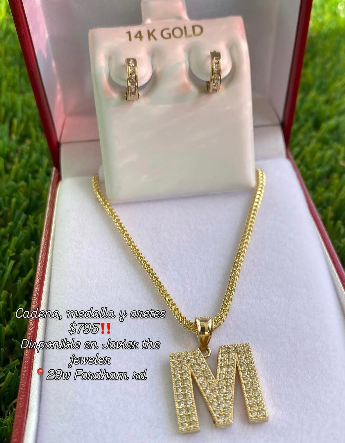 14 K Initial CZ Pendant W/ Hollow Franco Chain (18” Inches) + Hoops Special JTJ™