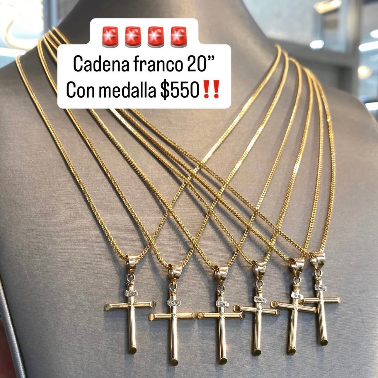 14 K Cross Pendant W/ Franco Hollow Chain (20” Inches) JTJ™