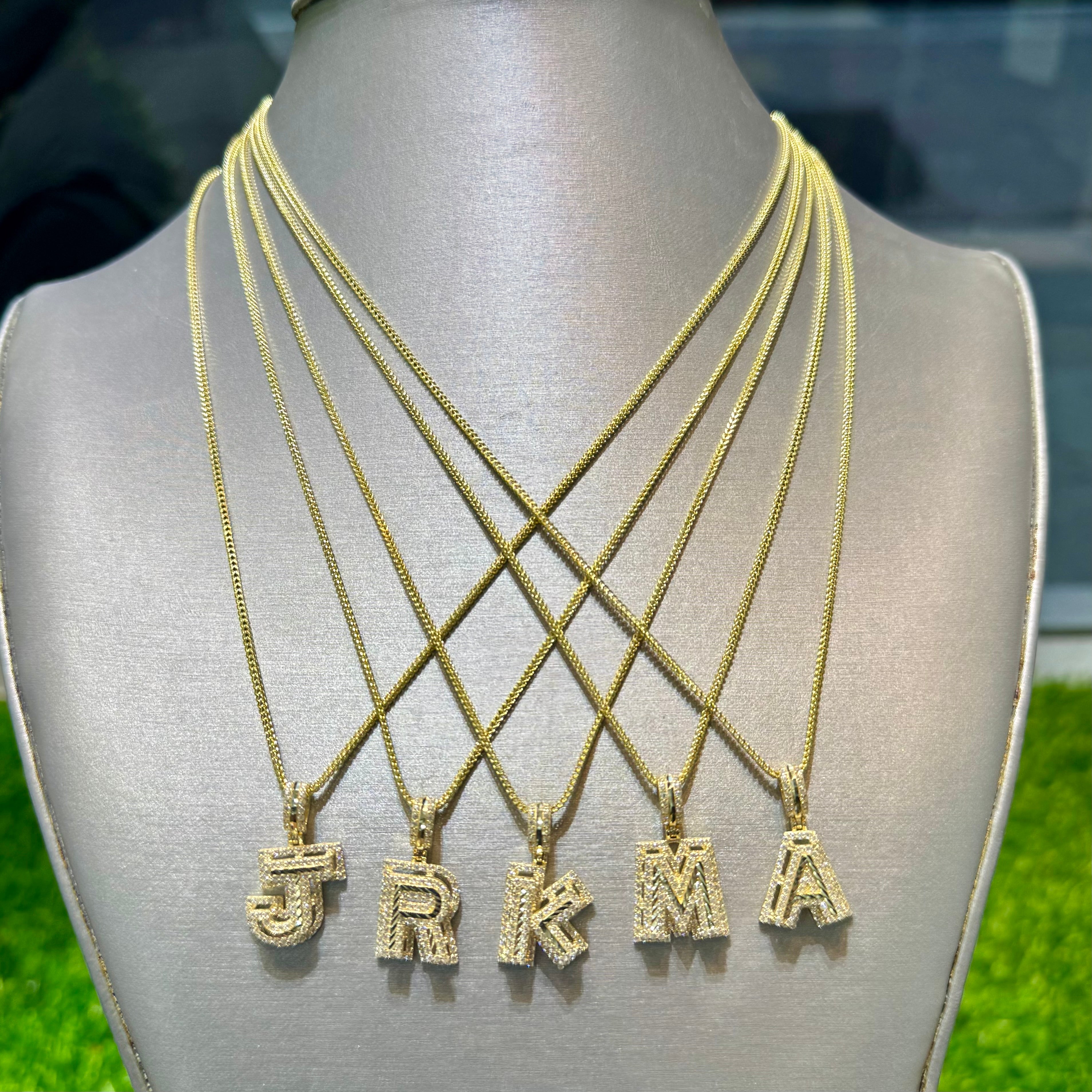 14k Initial Pendant With Franco Chain JTJ™ - pendant made of real 14k yellow gold and includes 1 year warranty. buy with confidence from the best jeweler in NYC.