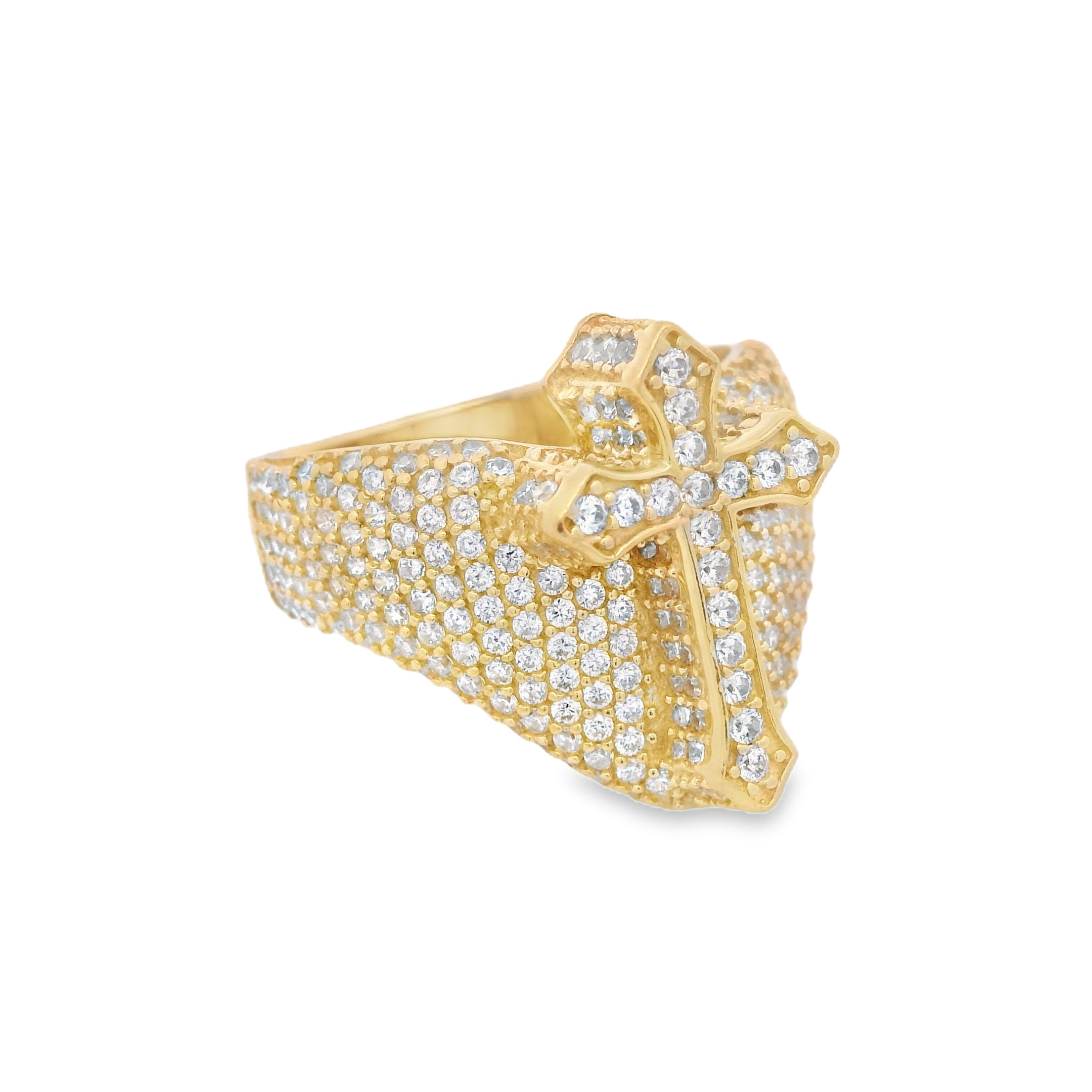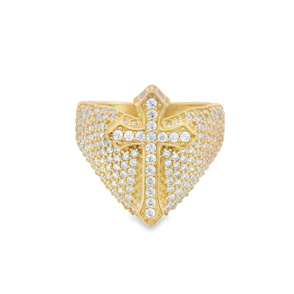 14k Men's Cross Ring CZ JTJ ™ -    Made of real 14k yellow gold and includes 1 year warranty. Buy with confidence from the best jeweler in NYC.