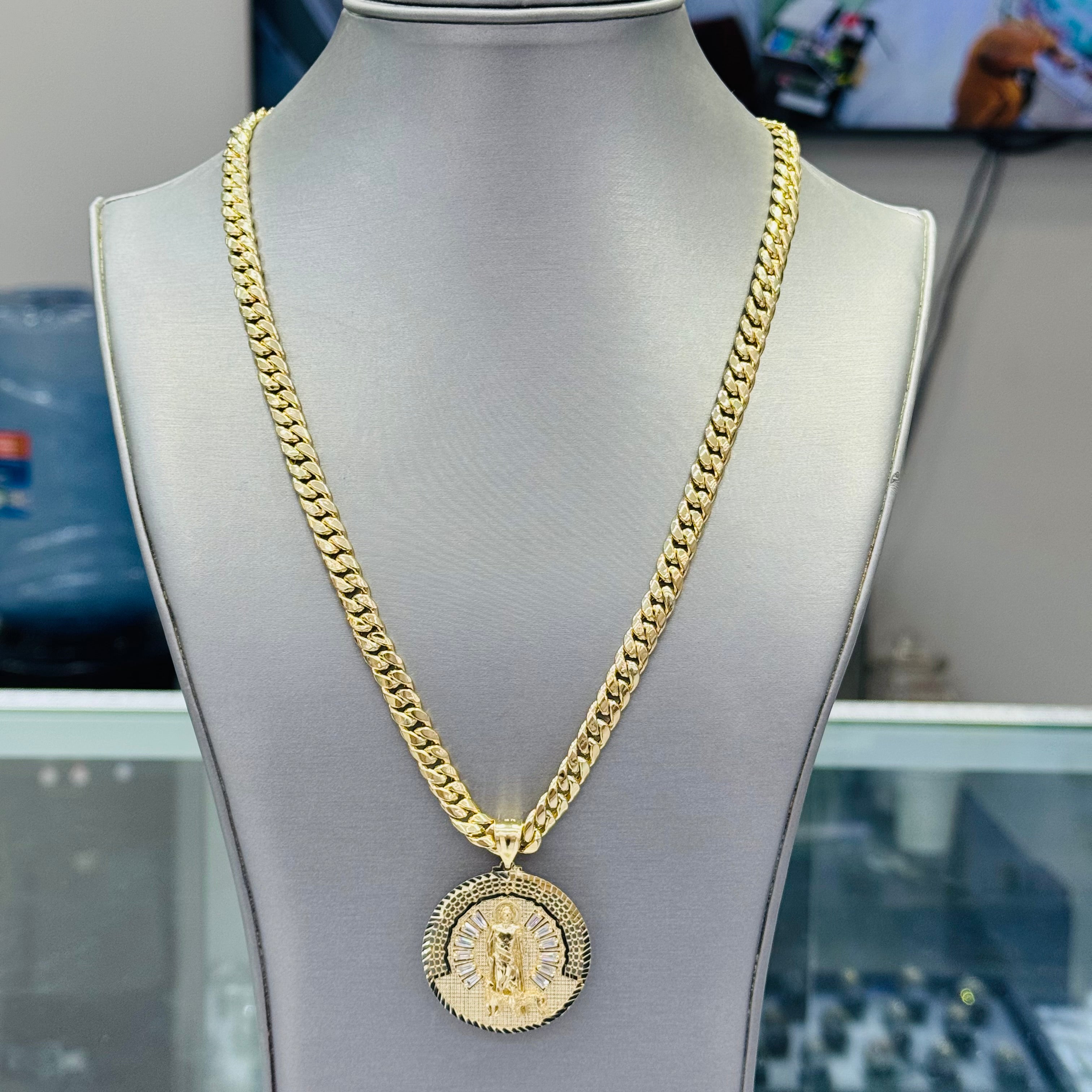 14k Saint Lazarus Pendant W/ Hollow Cuban Chain (7MM - 20” Inches) JTJ™