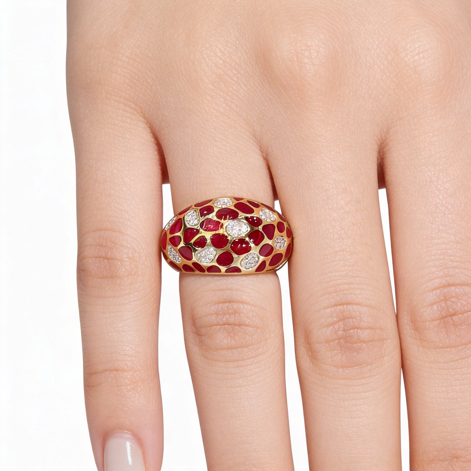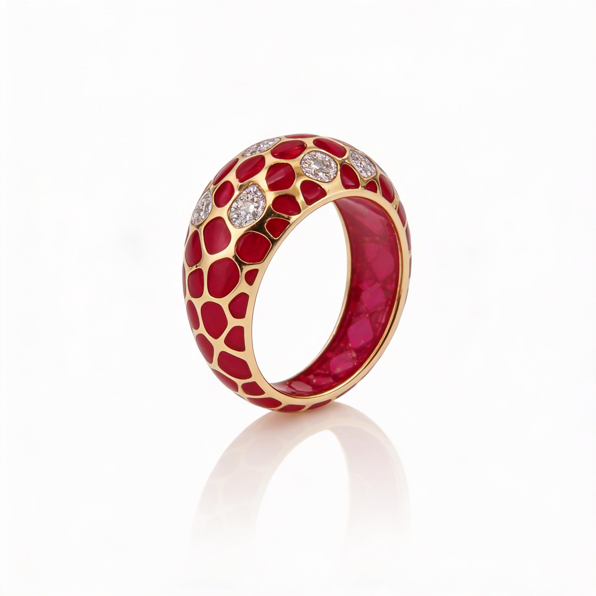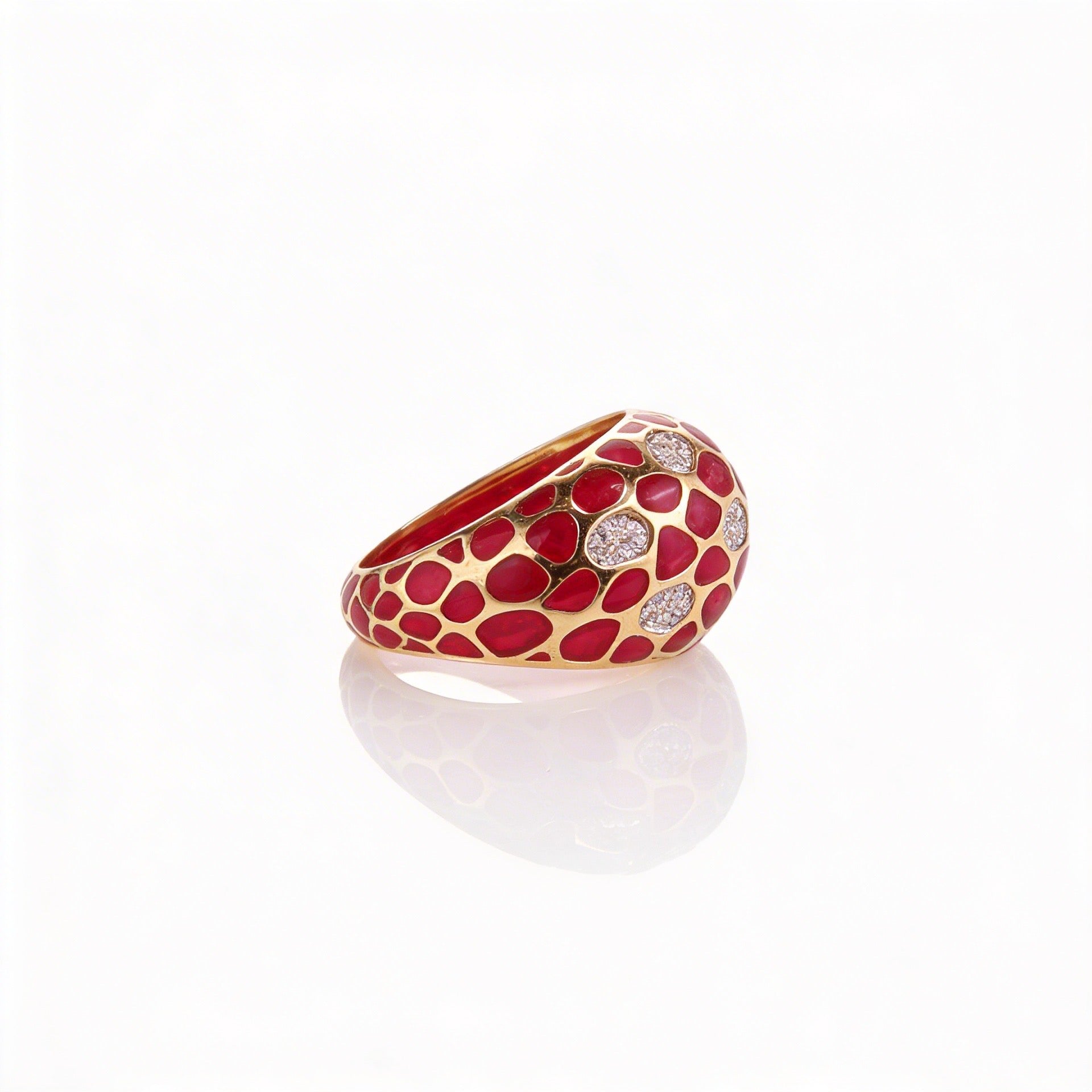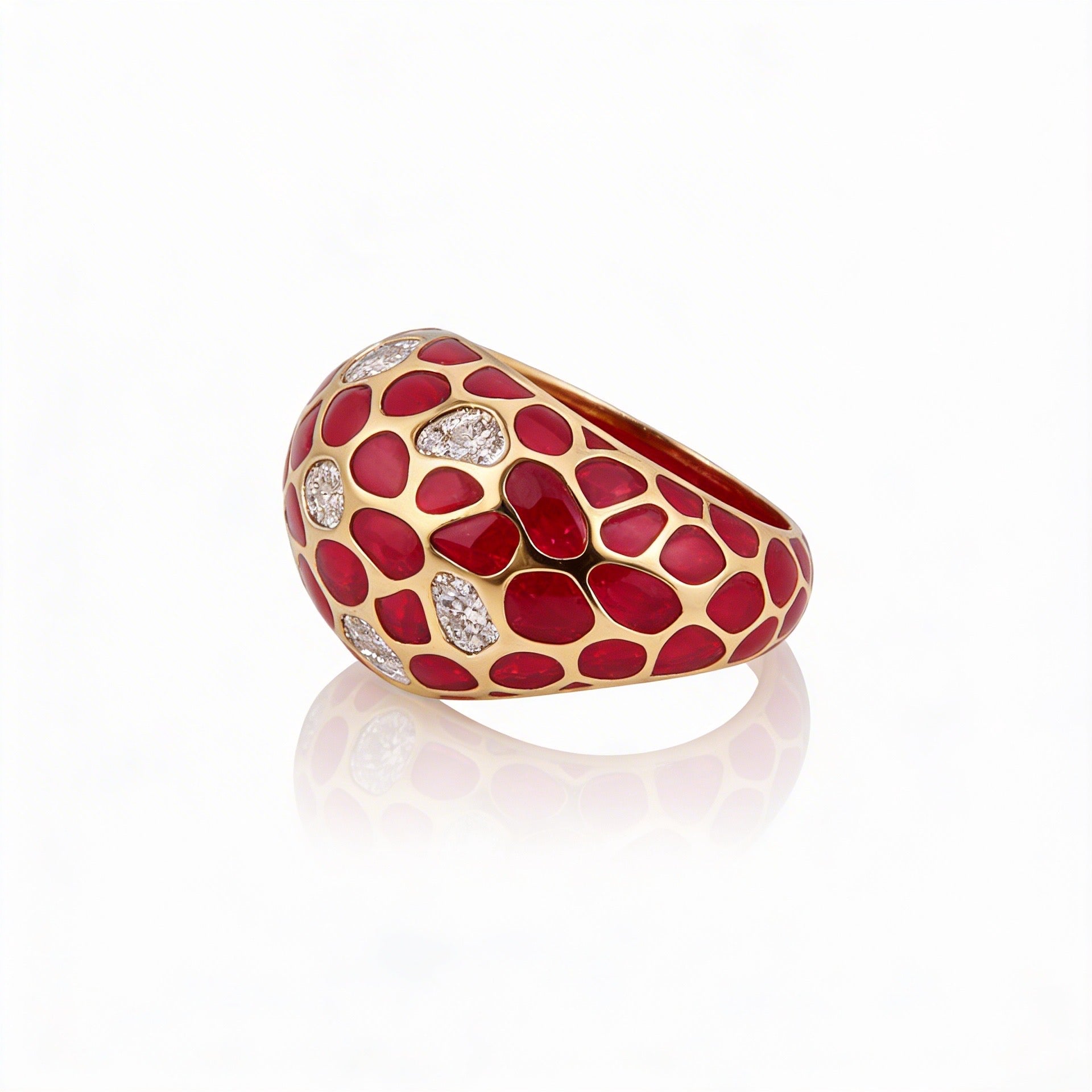 18 k Yellow Gold Women VVS 💎 Diamonds Red Style Ring