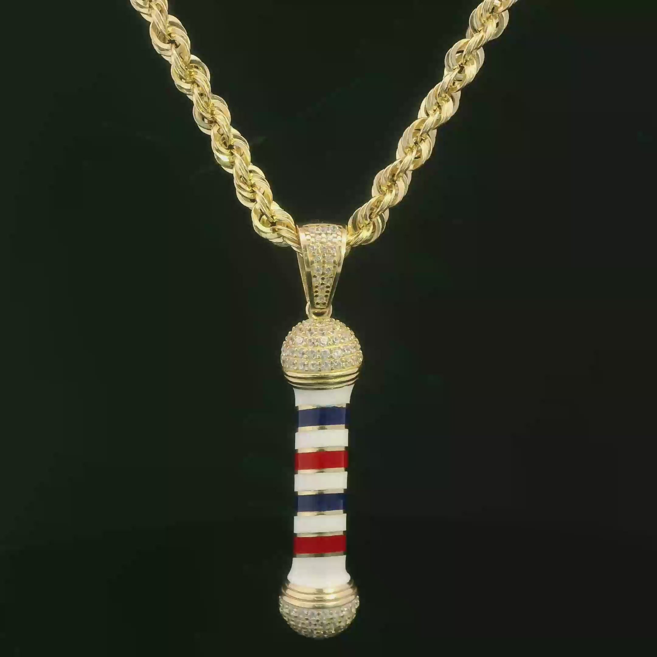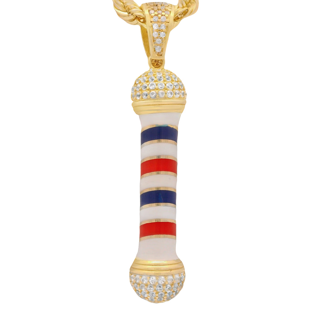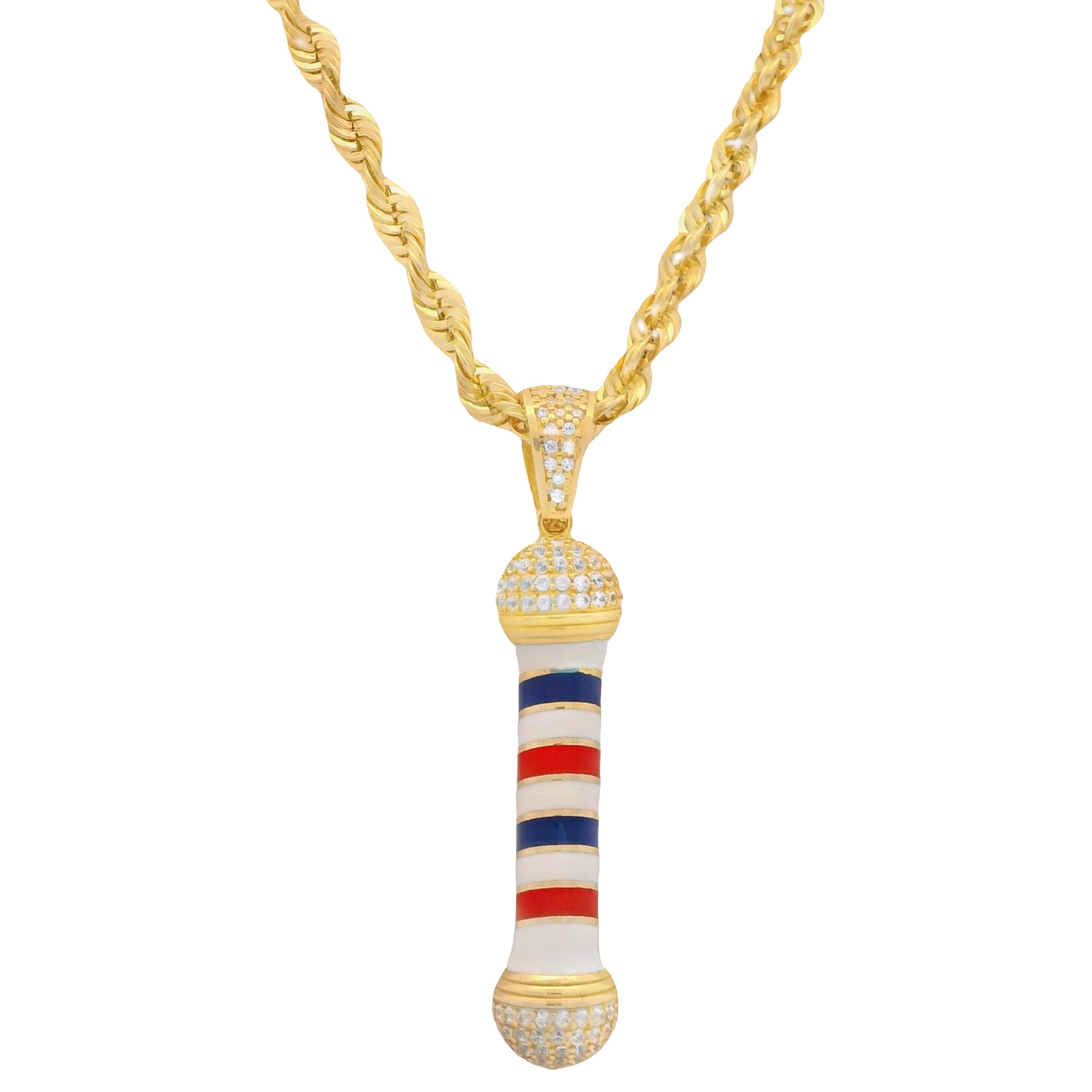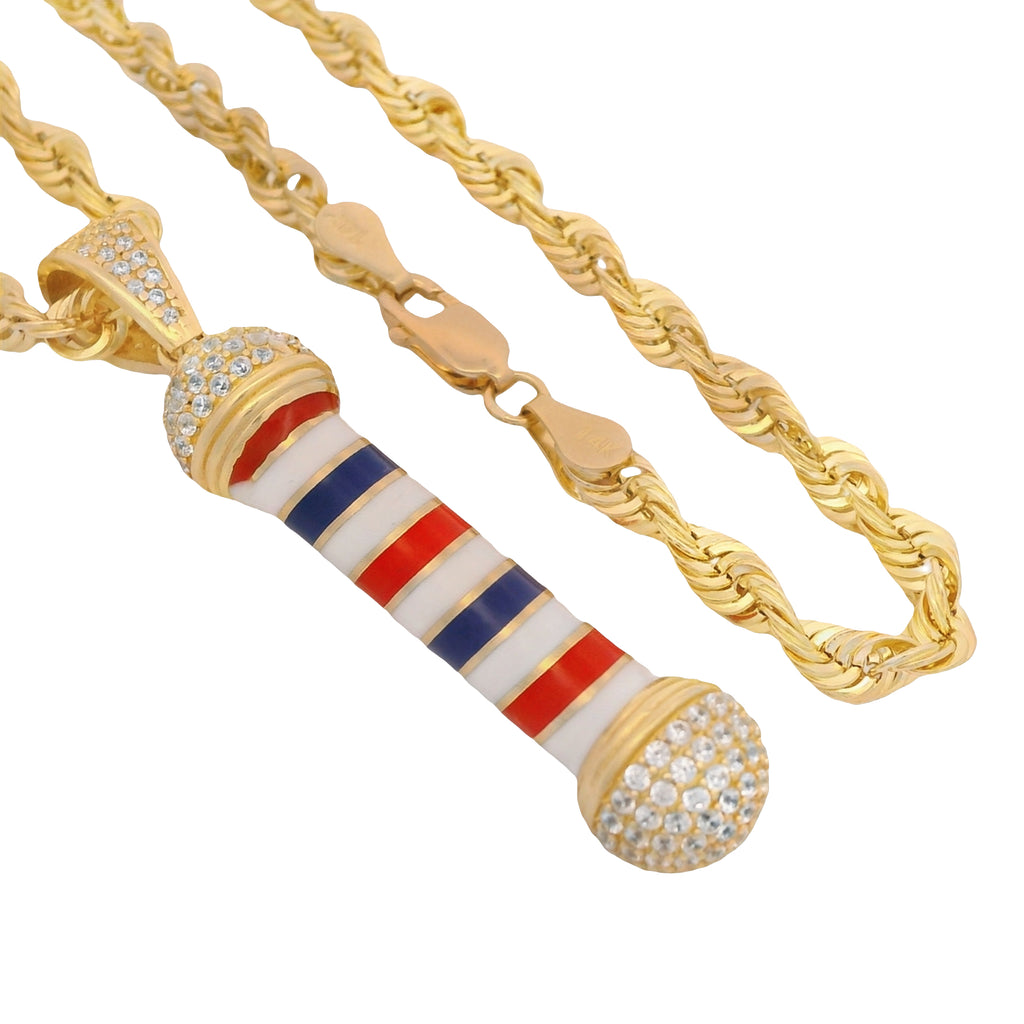 14K Barber Pole 💈 Pendant W/ Hollow Rope Chain (3.8MM - 24” Inches) JTJ™