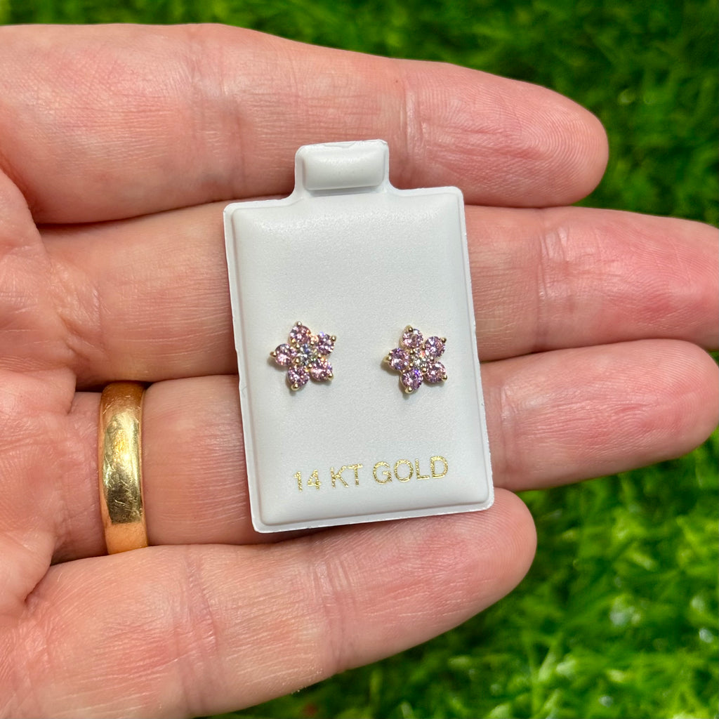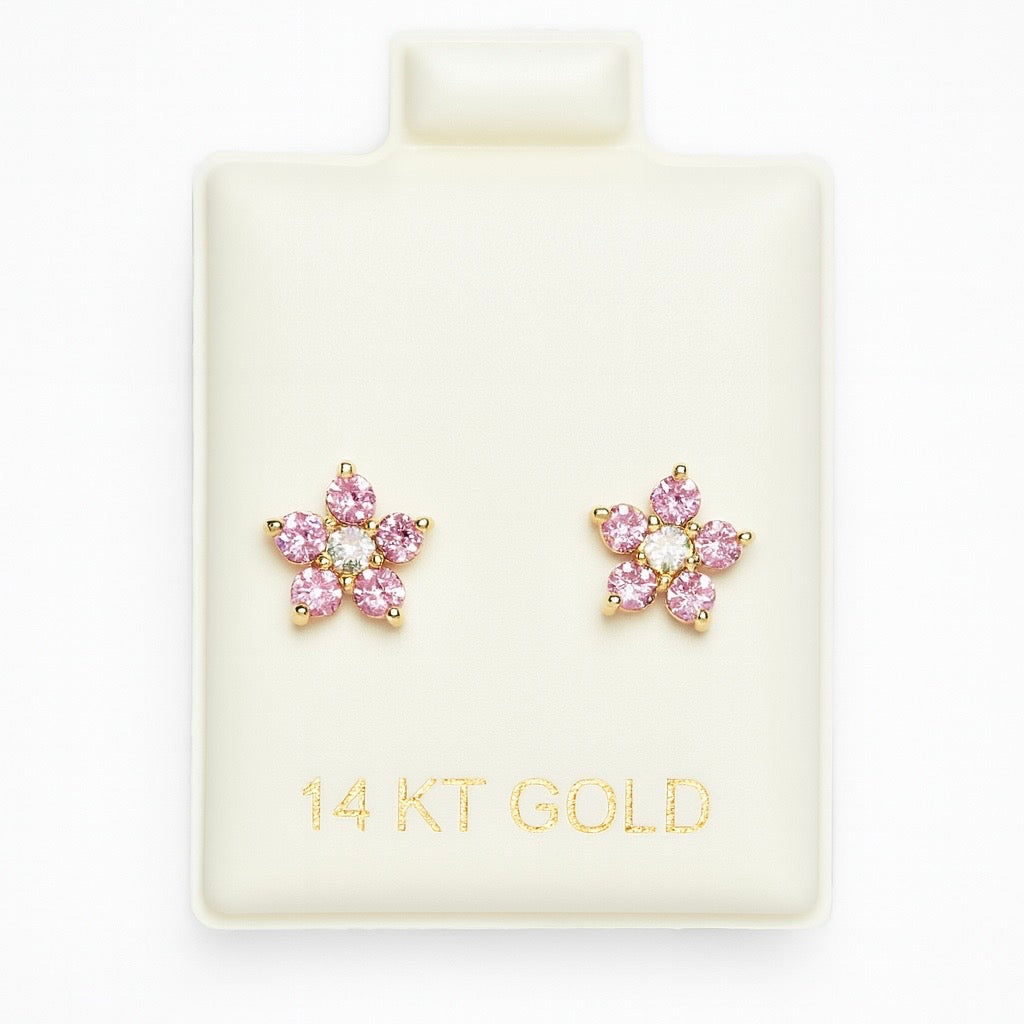 14K CZ Pink Flower 🌺Earrings JTJ™