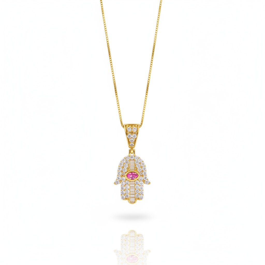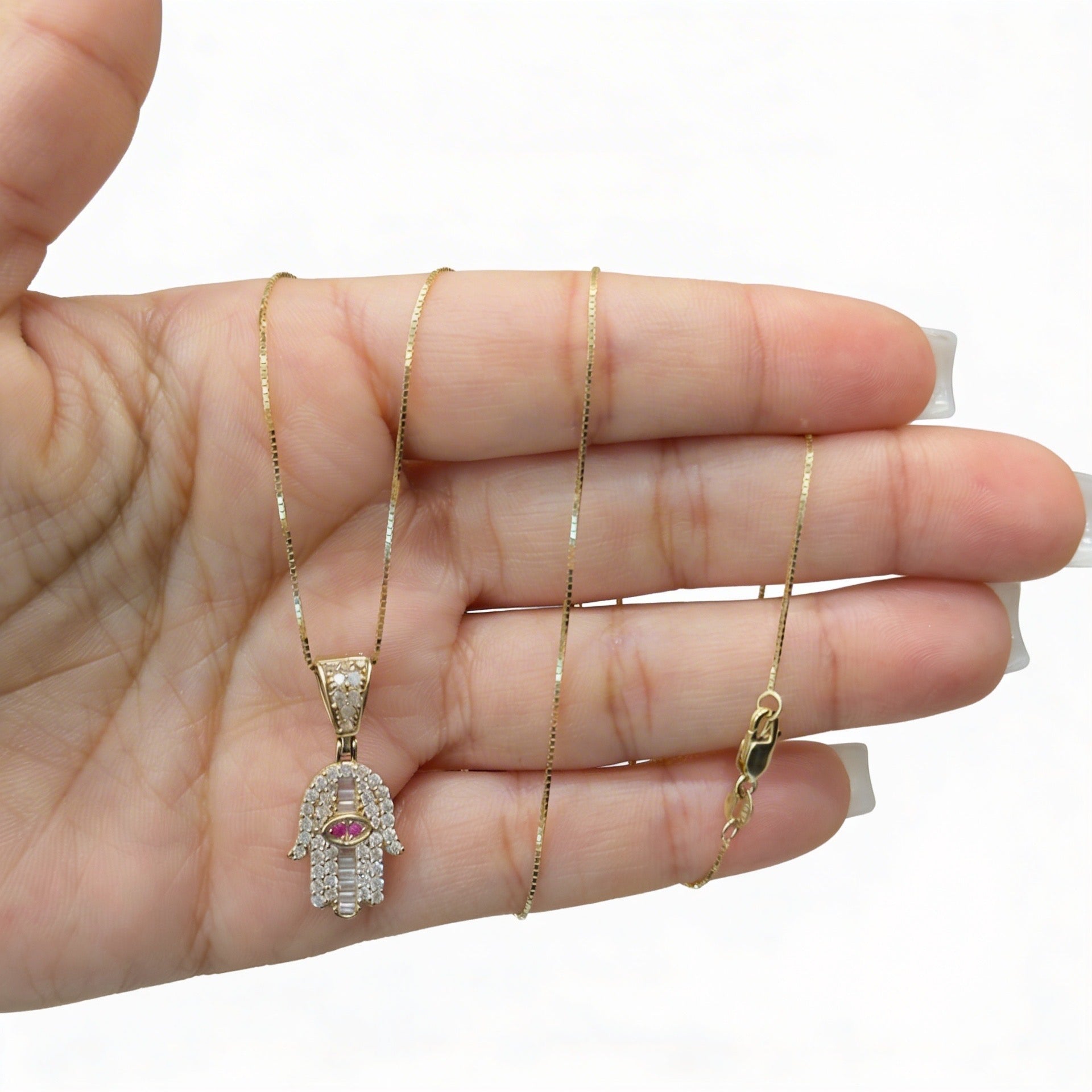 14k Hamsa pendant full cz W/ Solid Box Chain 20” Inches JTJ™