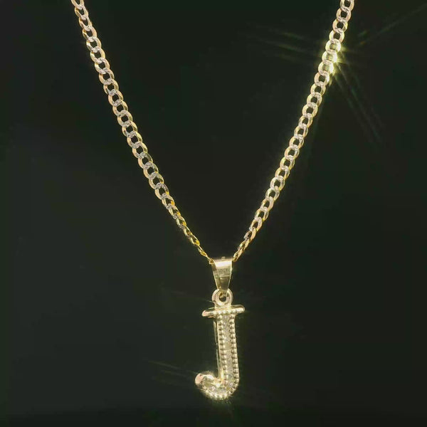 14K Initial (J) CZ Pendant w/ Solid Two Tone Cuban Chain (18” Inches) JTJ™