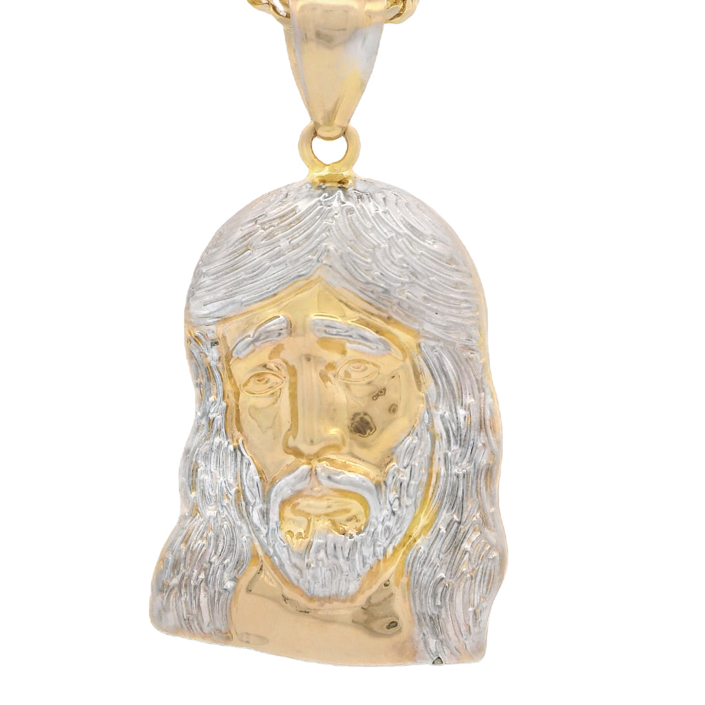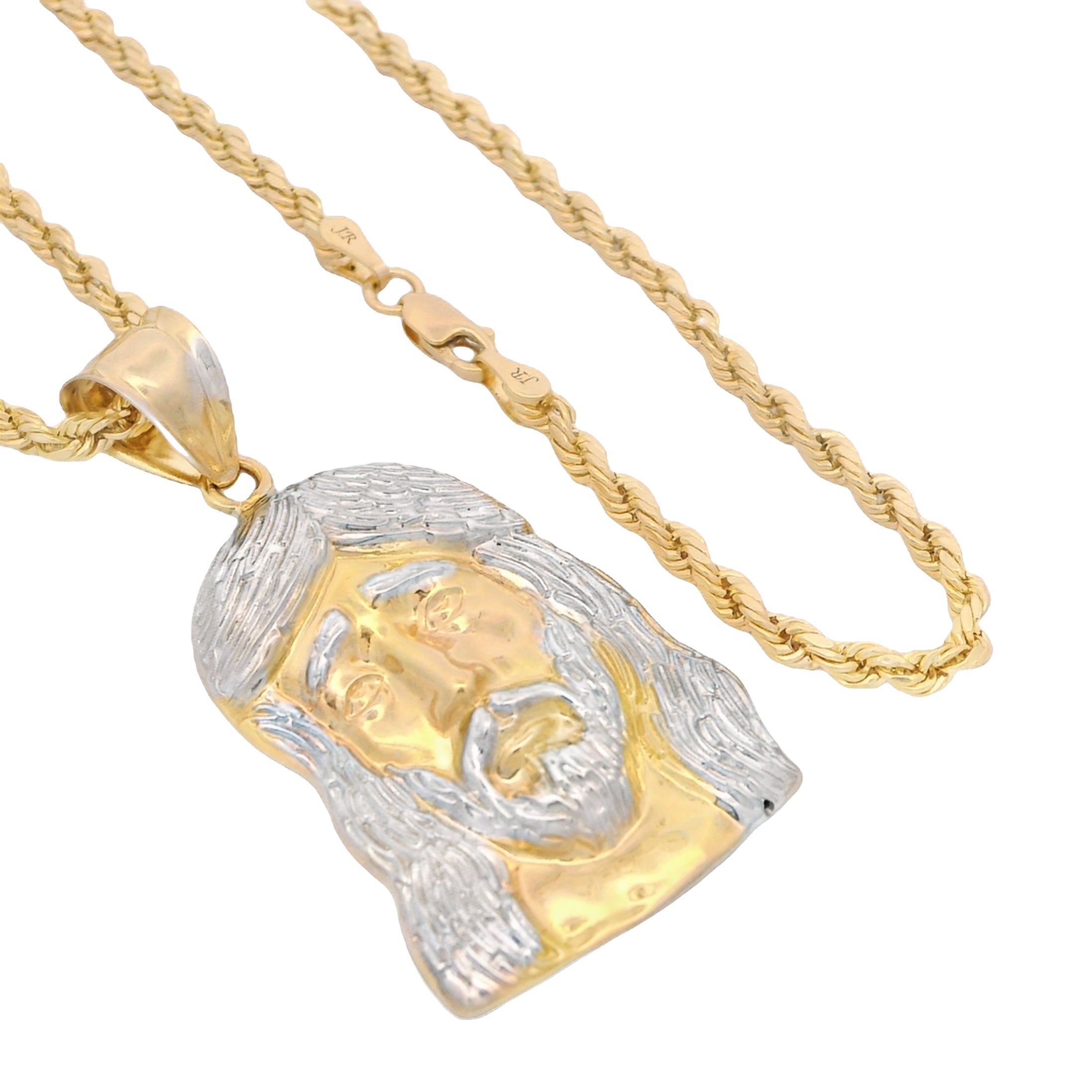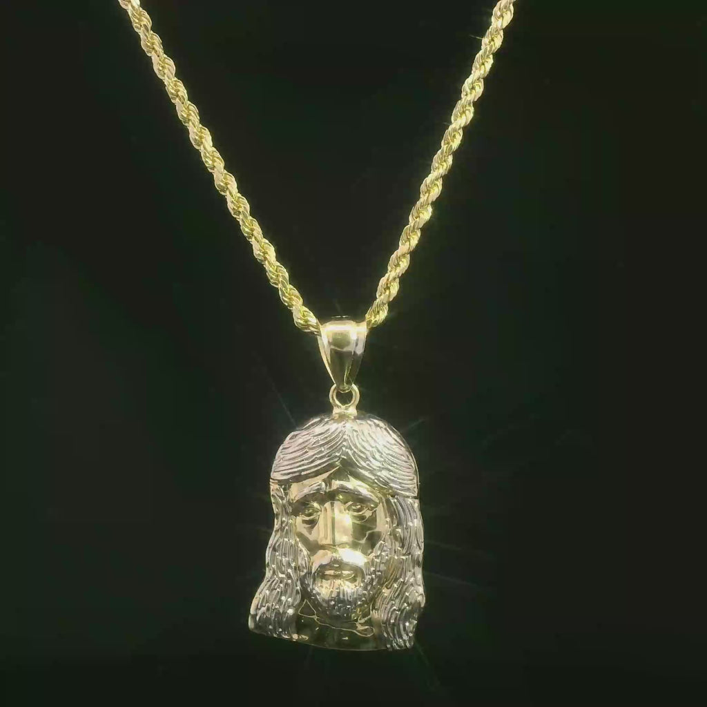 14K Jesus Face Pendant W/ Hollow Rope Chain (22” Inches) JTJ™