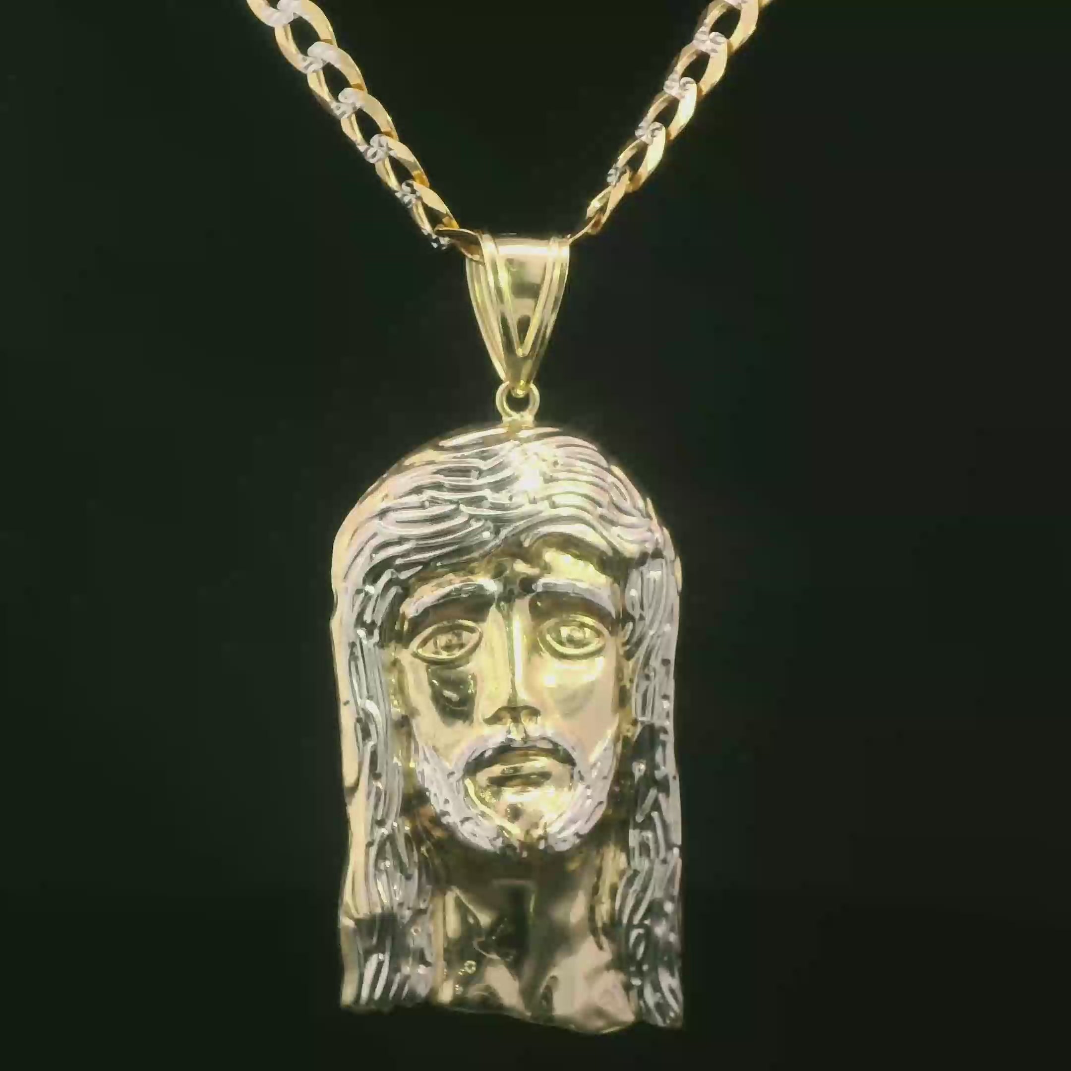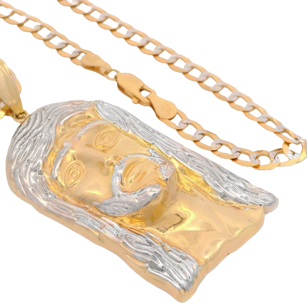 14K Jesus face Pendant W/ Solid Two Tone Cuban Chain (5.7MM - 24” Inches) JTJ™