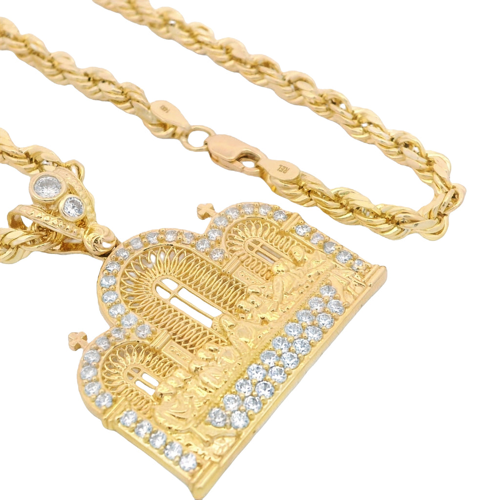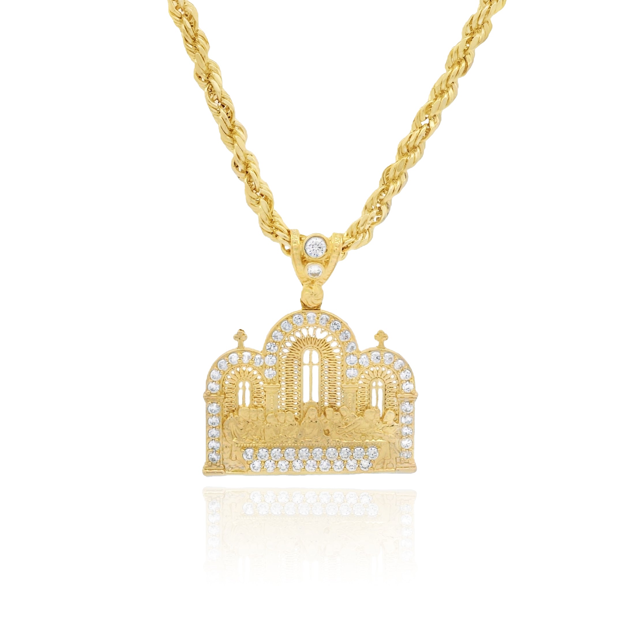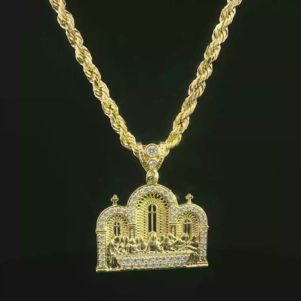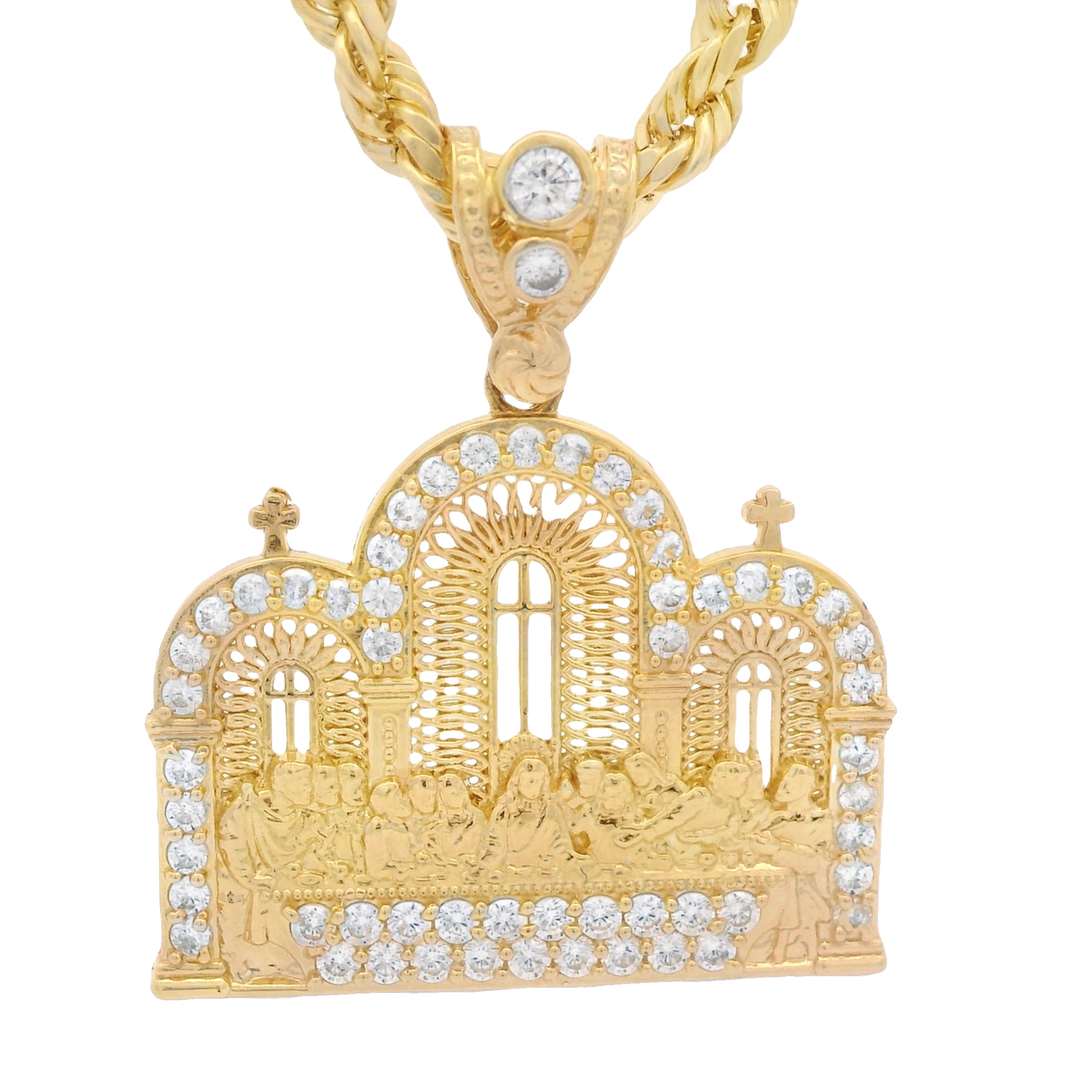 14K Last Supper CZ Pendant W/ Hollow Rope Chain (3.5MM - 24” Inches) JTJ™
