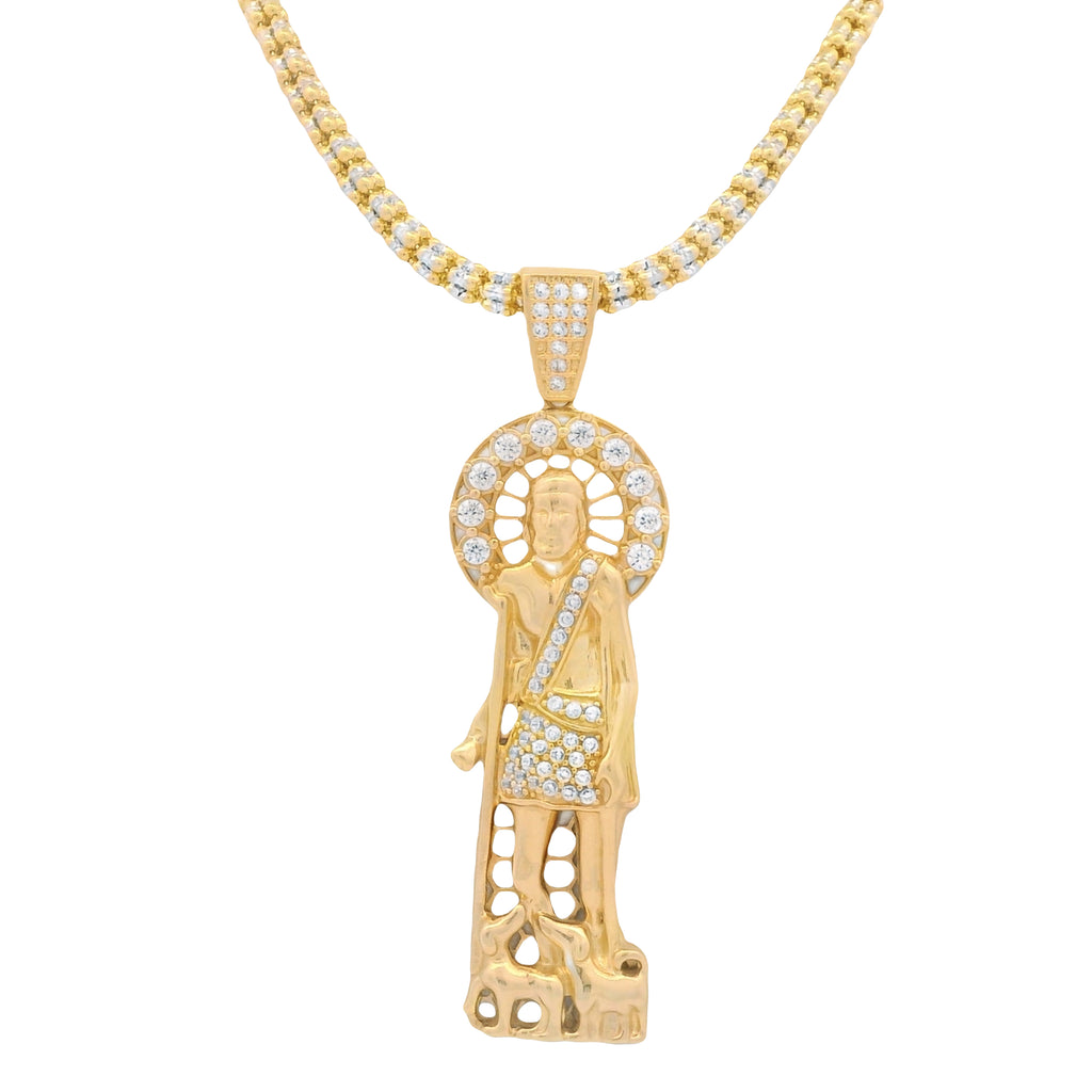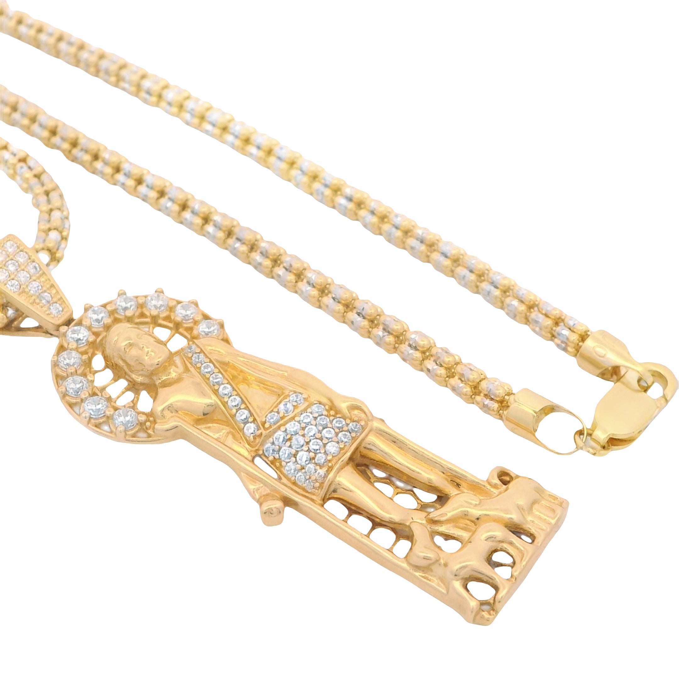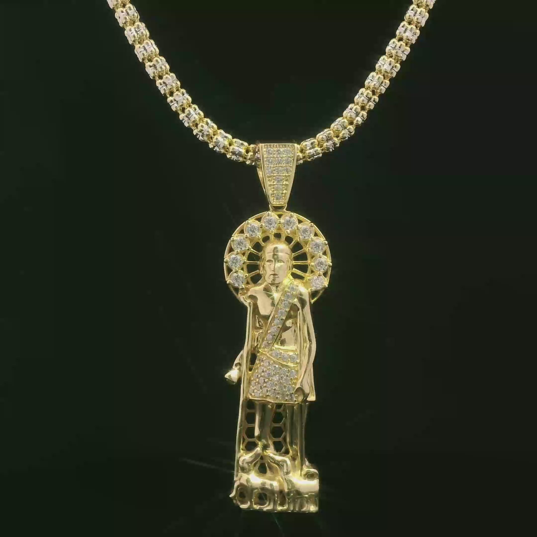 14k Pendant With Iced Chain JTJ™ -made of real 14k yellow gold and includes 1 year warranty. buy with confidence from the best jeweler in NYC: