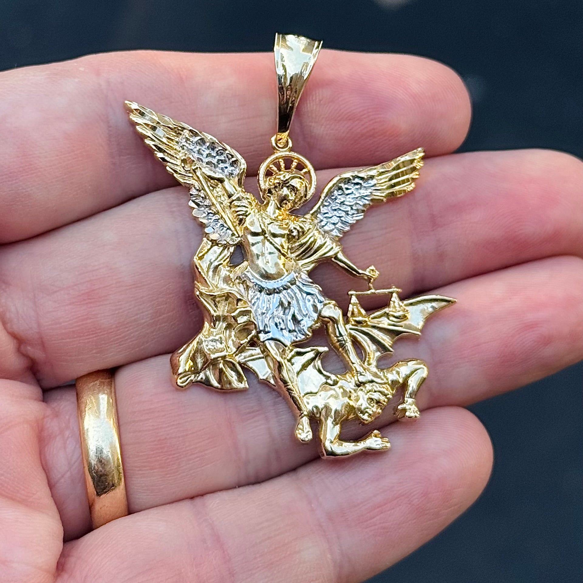 NEW* 14K Saint Michael Pendant JTJ™- this amazing pendant was created for a beautiful collection, jewelry that will last over time; it is made with real 14k yellow gold and includes 1 year warranted from (@javierthejeweler) with confidence from the best jeweler in New York:
