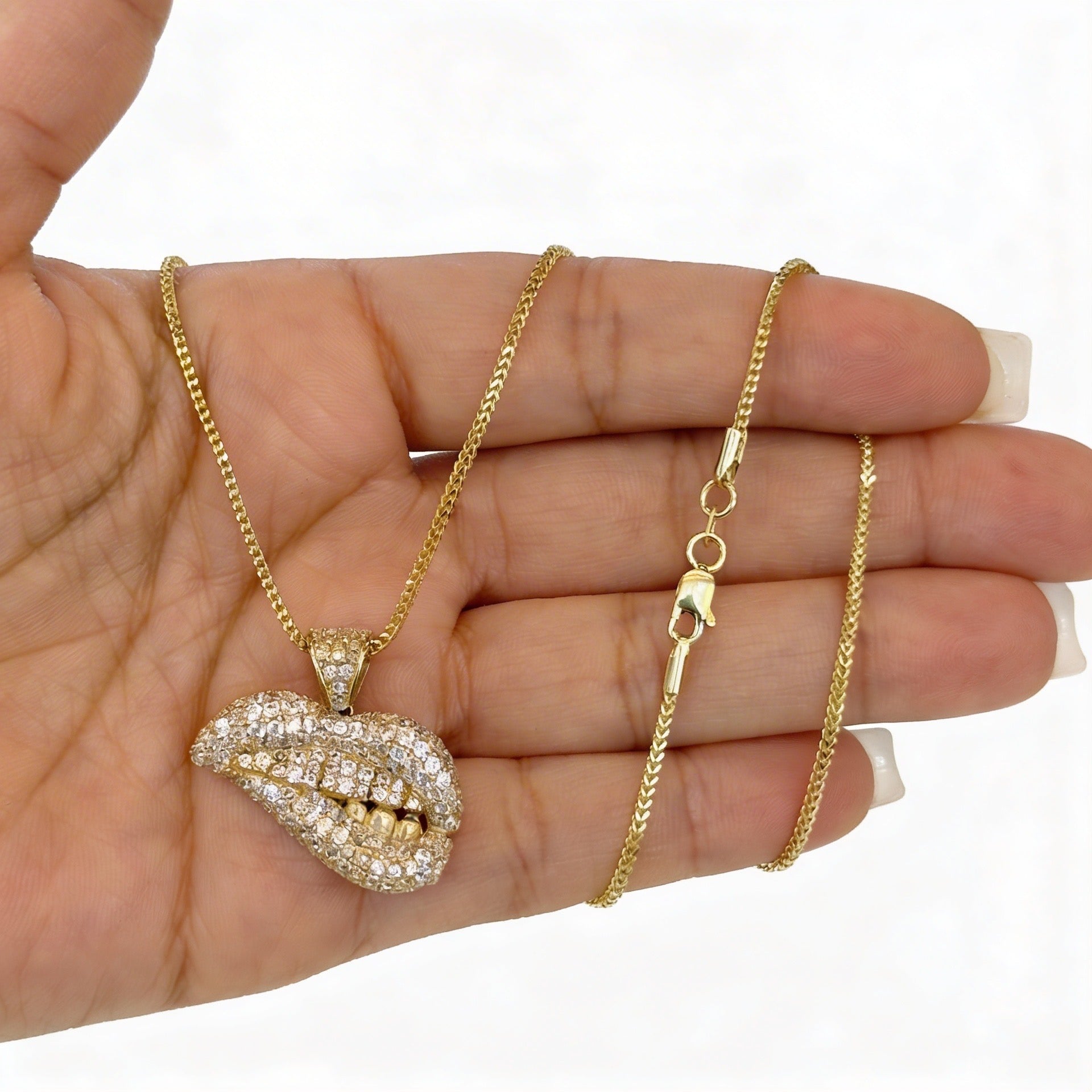 Length: 16” in. Sexy mouth pendant full CZ: .8” inch
