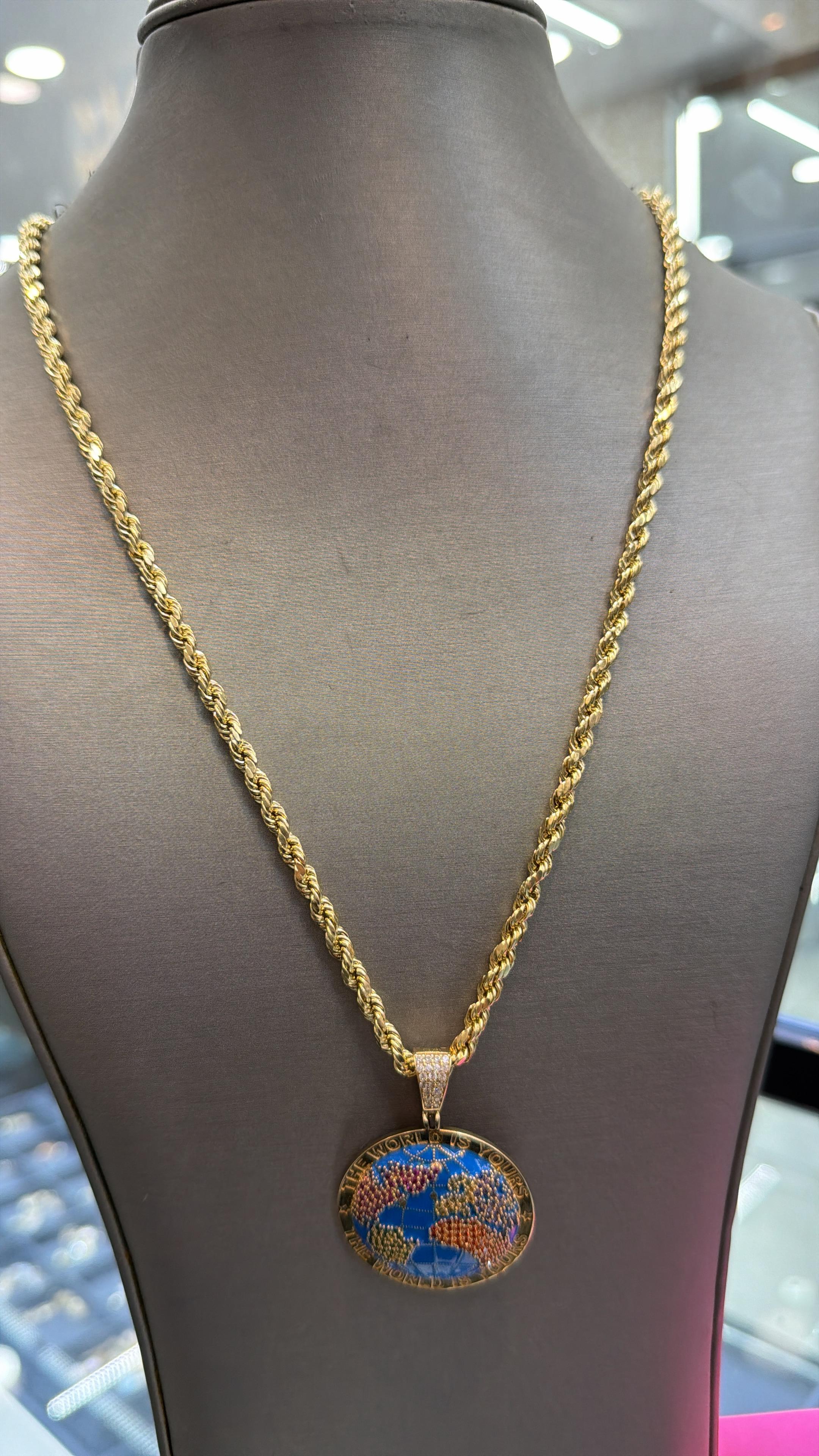 14 k The World W/ Hollow Rope Chain JTJ™ is backordered and will ship as soon as it is back in stock.