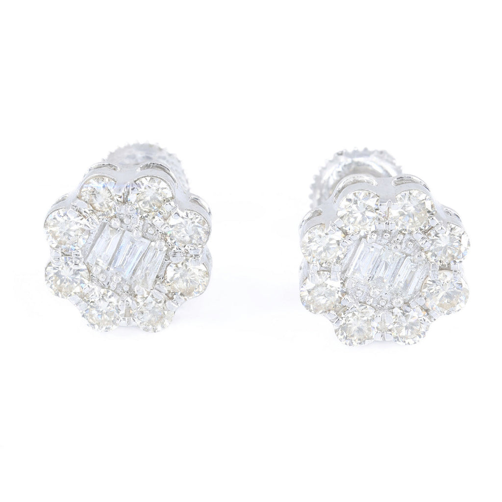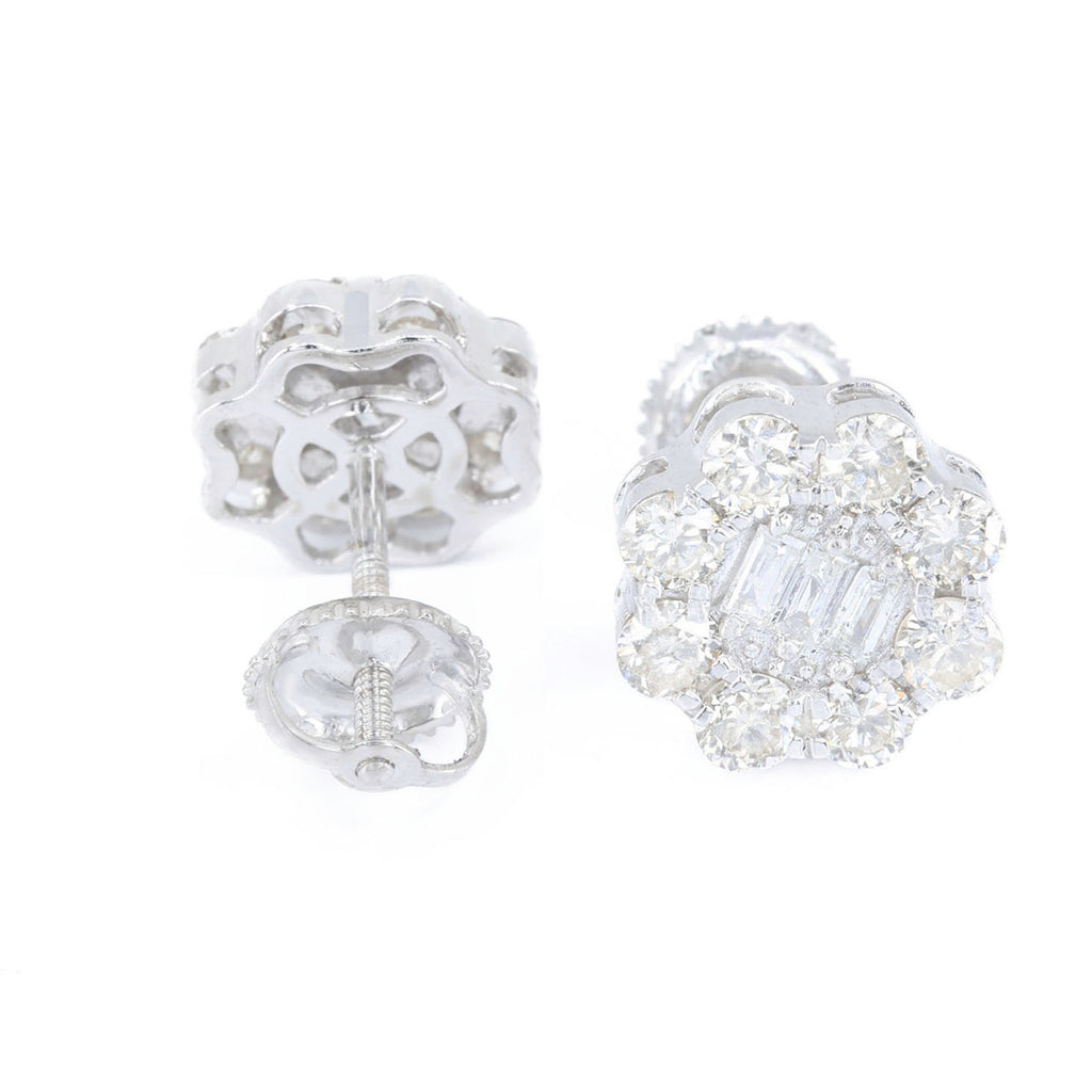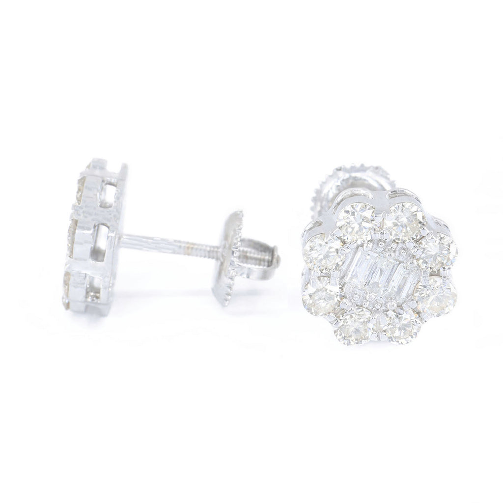 14k White Gold Flower Baguette Diamonds 💎 VS Earrings JTJ™ -